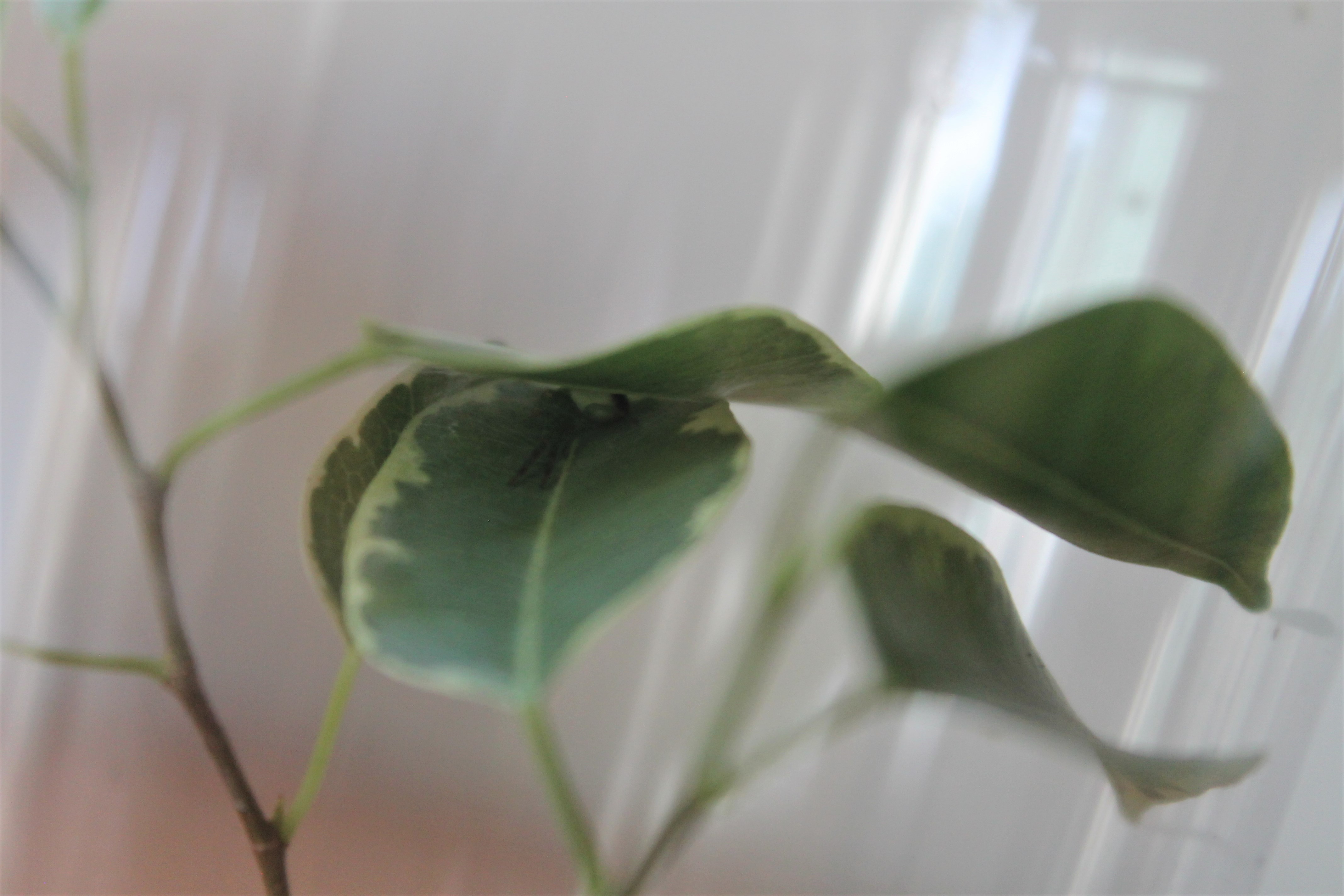 Uciekł mi z 2 razy. Od jakiegoś czasu znalazł sobie miejsce wśród liści fikusa, kilka dni temu upolował tam muchę.