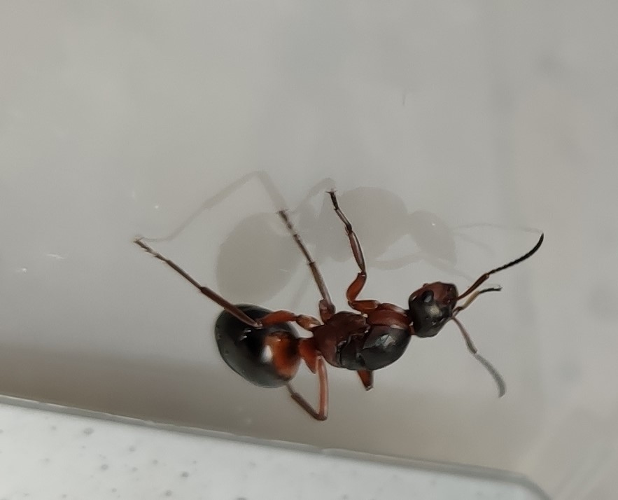 Zdjęcia robione Xiaomi Mi 9 - przy czym na szybko; myślę że mogłyby być lepsze. Generalnie stawiałem na Formica polyctena, ze względu na najbardziej zbliżony wygląd. Jako że moje doświadczenie z mrówkami opiera się na Messor Barbarus to planowałem ją wypuścić, gdyż prawdopodobnie nie znalazłbym mrówek pod adopcje.