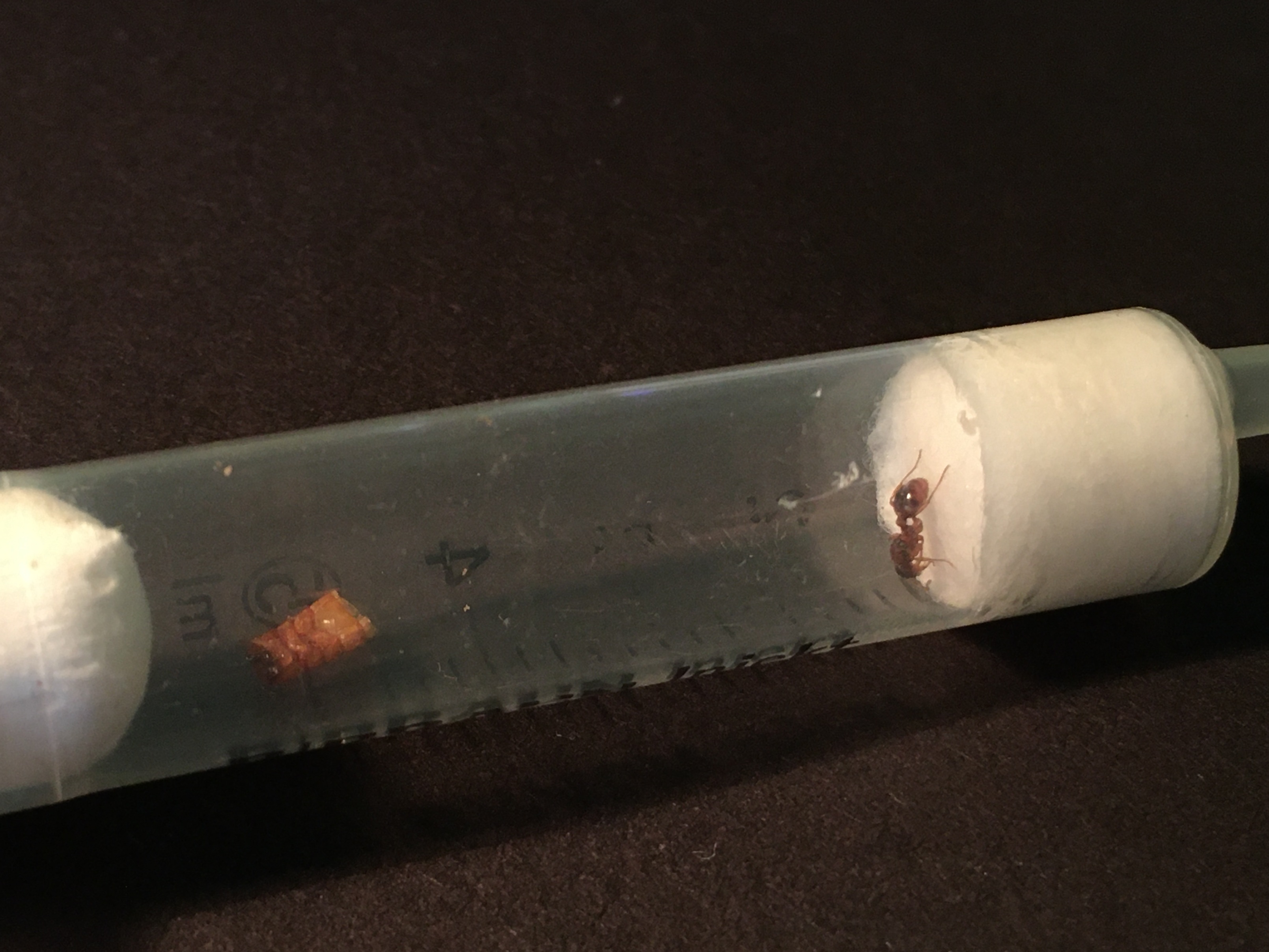 Umieściłem w strzykawce 5ml, dałem mini kroplę miodku, złożyła jajo,