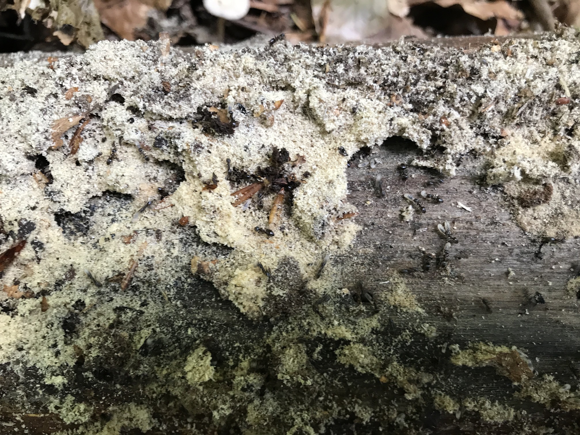 Pod korą było mnóstwo drewna sproszkowanego. Drzewo leżało na ziemi