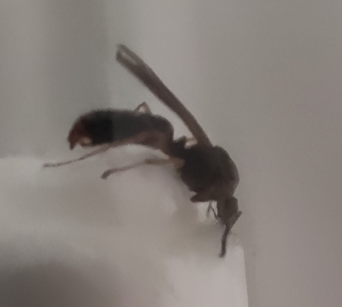 No spoko, ale mrówka po locie godowym ląduje i goni po ziemi aż znajdzie miejsce do założenia gniazda i trochę przed tą sytuacją albo po zjada/zrzuca skrzydła. Tą właśnie znalazłem jak sobie chodziła i grzebała w ziemii więc uznałem że już jest po.
