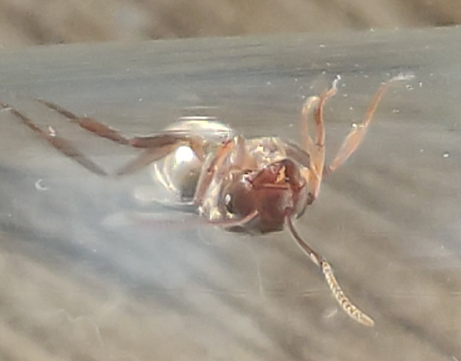 Druga mrówka szła sobie po placu zabaw w Krakowie. Ma około 9mm i pomarańczowe nóżki i czułka. nie ma kolca pomiędzy odwłokiem a korpusem. Nic nie chce jeść. Poniżej zdjęcia. Niestety druga mrówka pozwoliła sobie robić zdjęcia tylko od spodu (po przekręceniu probówki szybko przebiegała na górę.