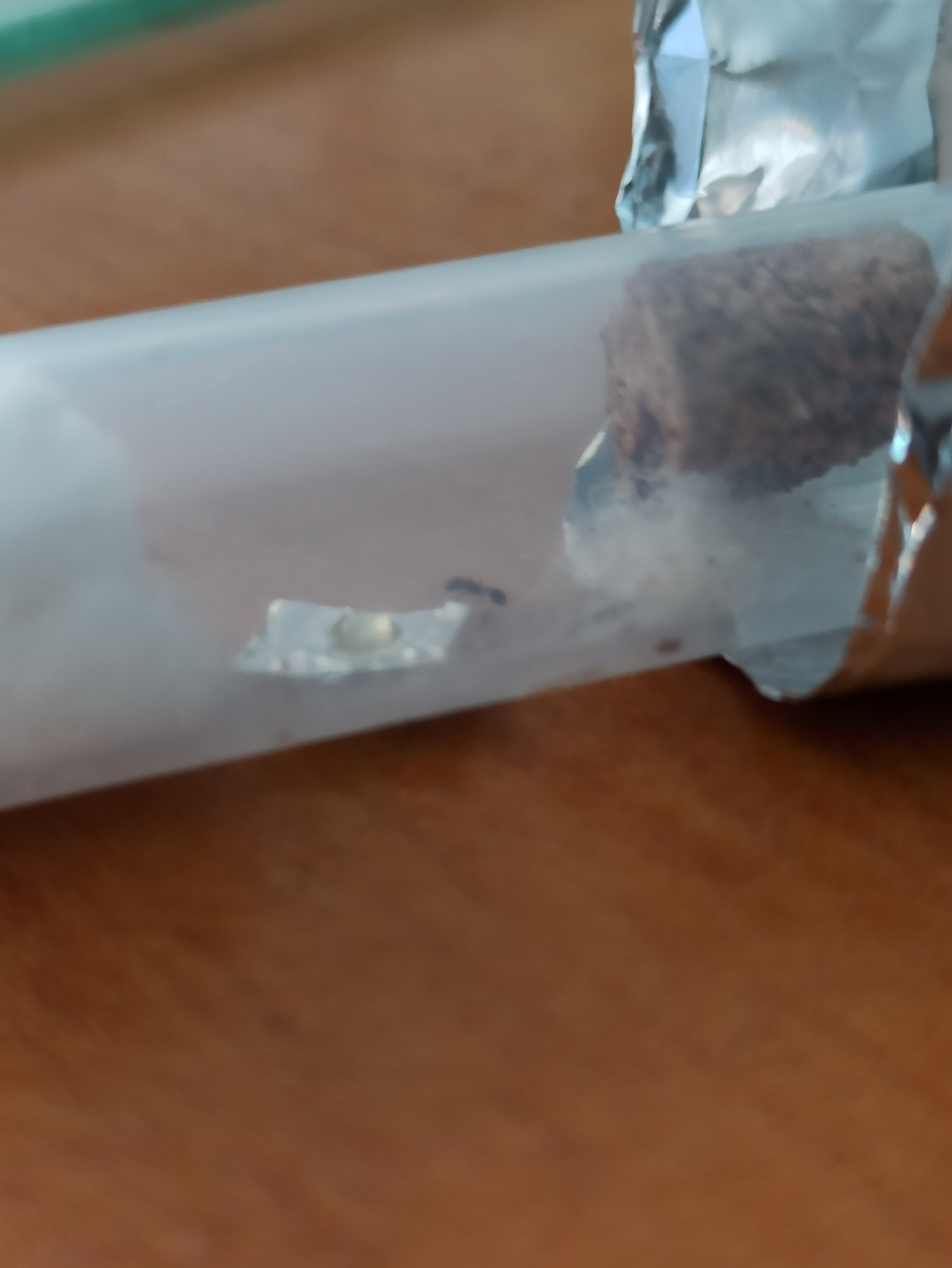 Wróciłem po małej "przerwie technicznej". Otóż tak, Leptothorax'y (wcześniej Myrmica sp.) dostały nową arenę. Na zbyt dużą nie wygląda ale na estetyczną też nie. Mnie to nie przeszkadza. U L. Niger probówka jest na wykończeniu, dałem nową i przyciemniłem ale znoszą tam tylko jajeczka. U Q Tetramorium caespitum (?) pojawiły się jajka tak z 1-2 tygodnie temu. Mącznik młynarek doznał jakby karłowatości. Są tam tylko małe mączniki, a duże padają. Halp