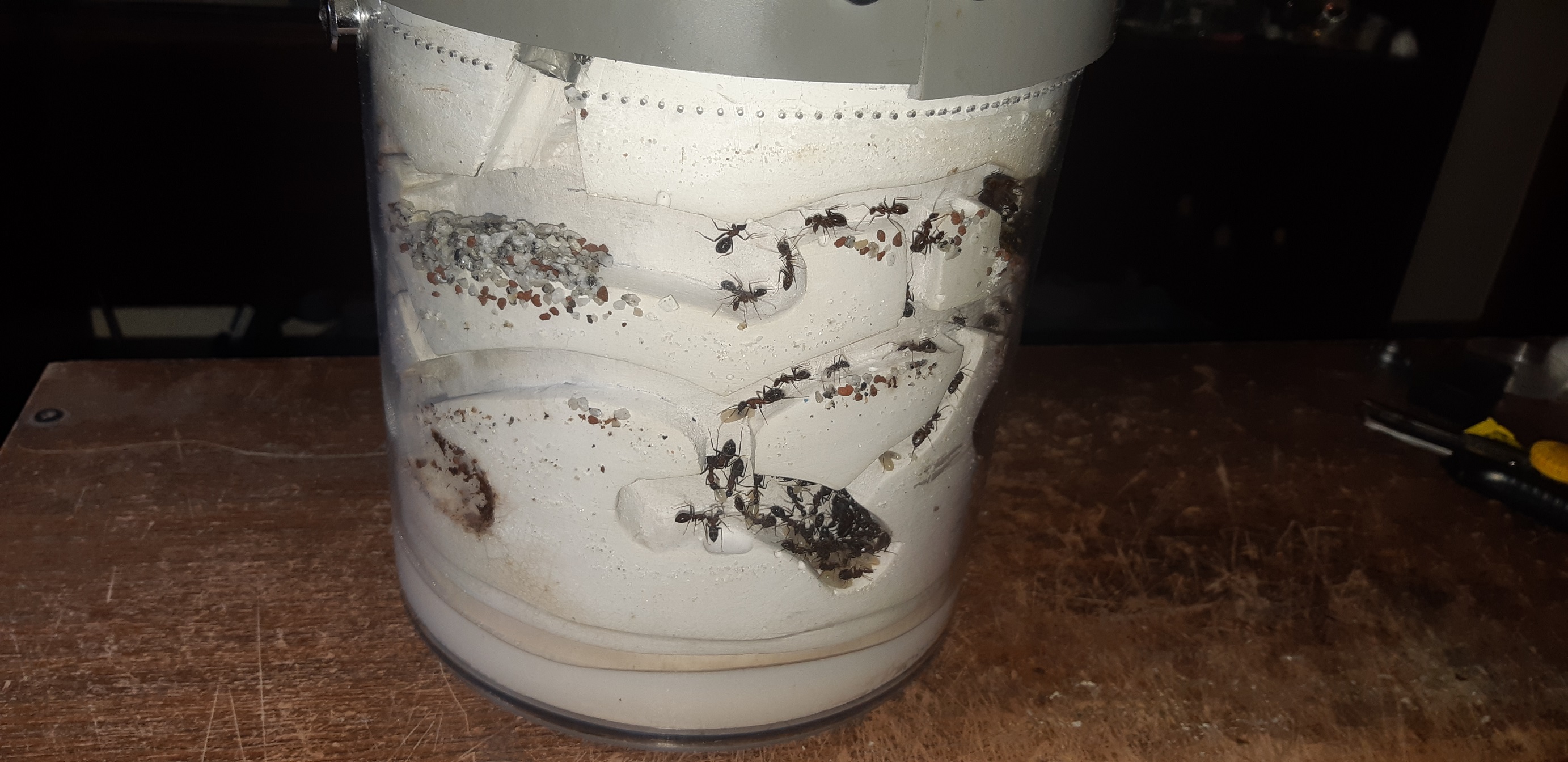 Super wyglada ta krolowa. Ja mam tylko Messor Barbarus i tez mialem Krolowa+ 4 robotnice przez dlugi czas, pozniej padly 3 robo, zostala jedna i wtedy uswiadomilem sobie, ze jak padnie i ta jedna to koniec. Bo krolowa mimo, iz skladala jaja to je zjadala a mialy wszystko. Zroznicowany pokarm. Wtedy zobaczylem poczwarke, ktorej nie zjadly. Pomyslalem w koncu cos. Byly dwie robotnice. Mysle jest dobrze, wiec dalem im jeszcze wiecej spokoju, ciepla i ciemnosci. Po kilku miesiacach do teraz jestem z nich Tak dumny, ze nie do opisania. Daly sobie rade we dwie wychowac tyle potomstwa. Nie wiem ile ich moze byc teraz przez te kilka miesiecy, ale krolowa ciagle salada jaja, przybywa mrówek, sa juz mrowki wieksze od innych, z czerwonymi glowami. Nigdy czegos Tak fantastycznego nie widzialem. Byly tez upadki. Probowka 22cm dlugosci. Chcialem wymienic pokarm po 24h, byly bardzo ruchliwe i stracilem 5 robo. Jak dla mnie nawet teraz strata jednej to smutek. Mrowki bardzo aktywne, Zaatakowaly patyczek do uszu, jak czyscilem probowke i poszlo. Pierwszy raz Tak zaatakowaly w grupie. Dobrze, ze w tych wiekszych zadnych strat. Zbieraczki chcac uchronic pokarm przede mna zaatakowaly. No nic zdarza sie. Nastepnego dnia w kolonii juz panowal spokoj. Ehh co za emocje. Chyba powinienem dziennik zalozyc bo duzo tego.