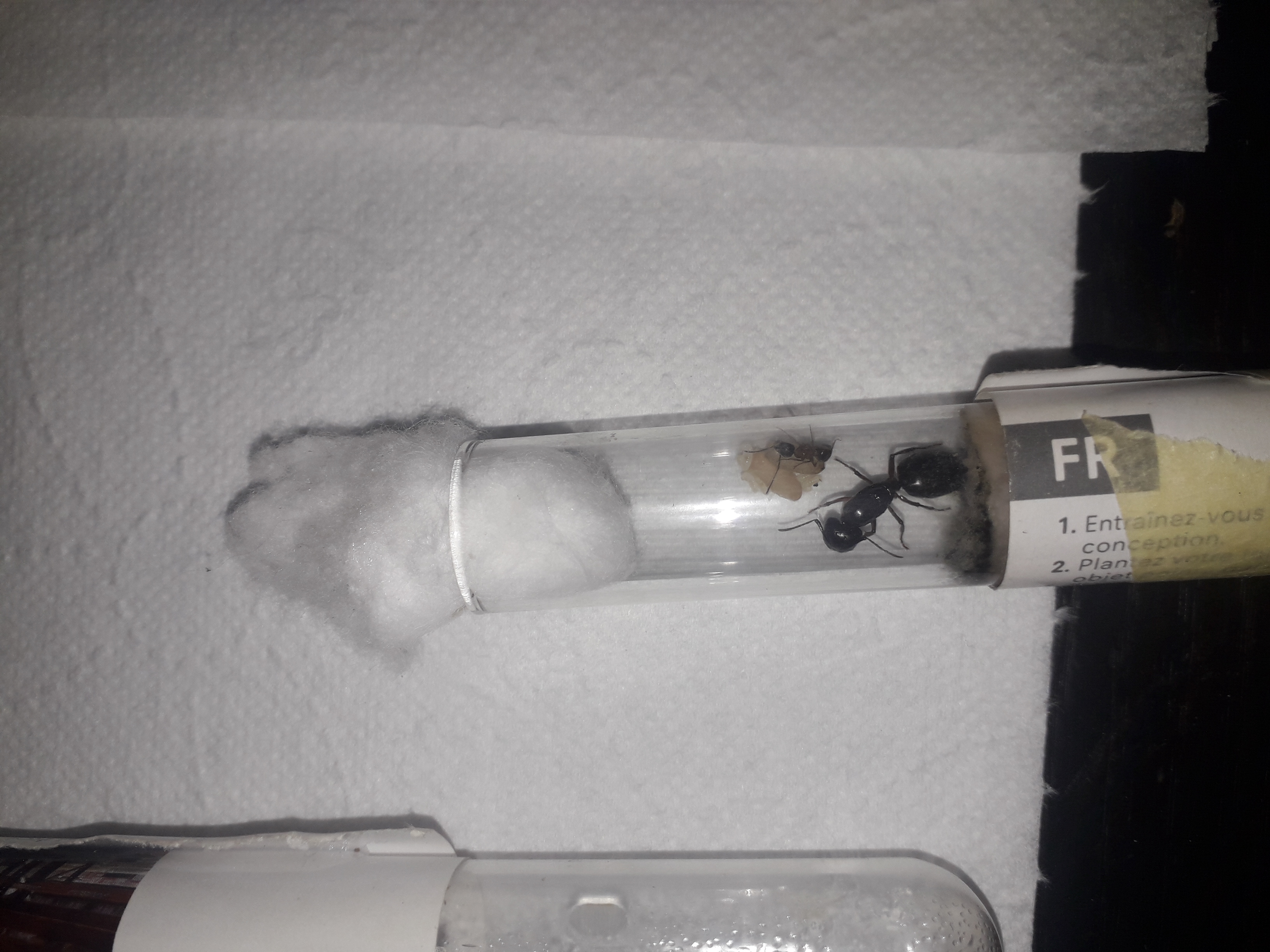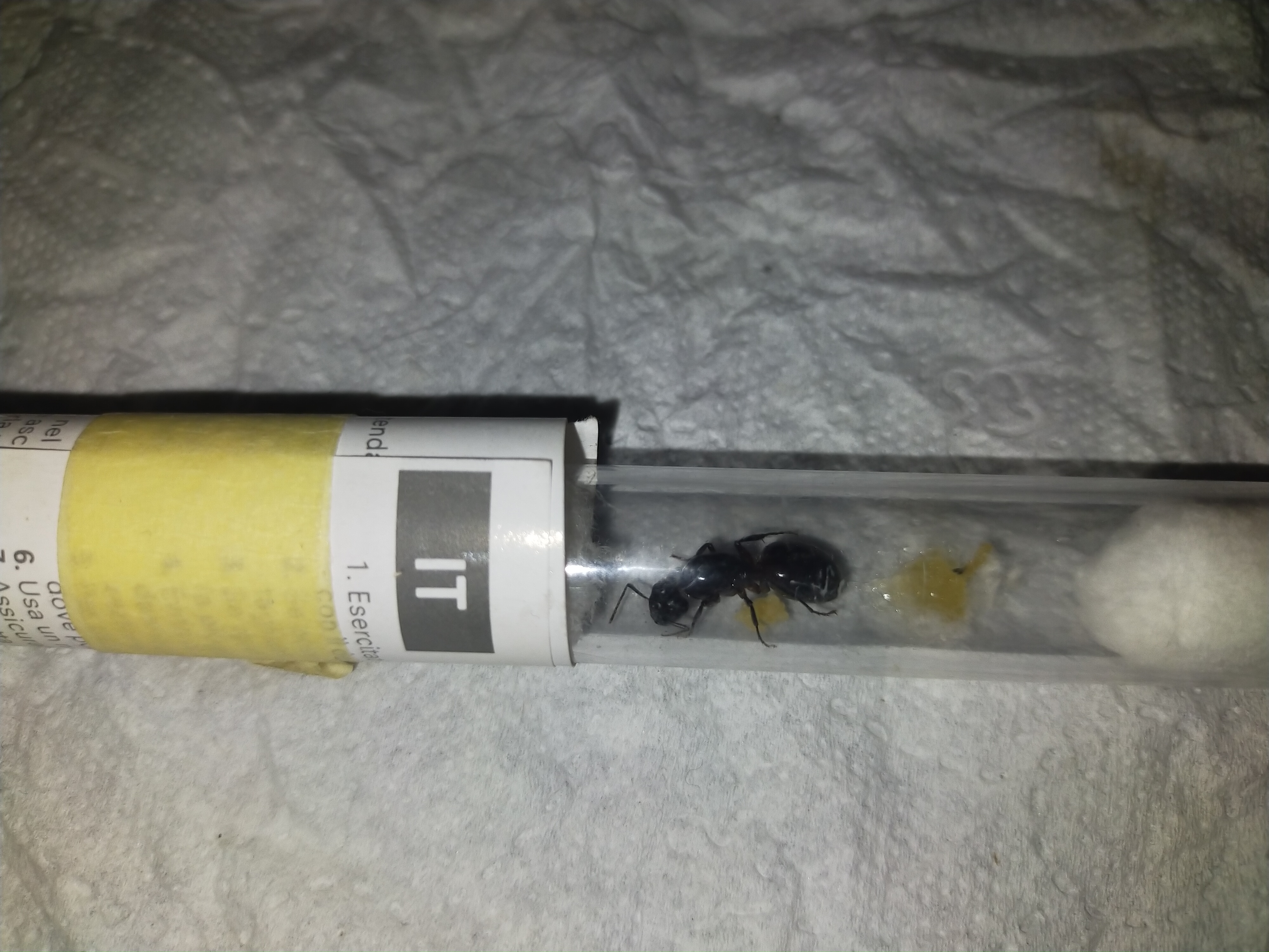 Jedna po przenosinach do gniazda akrylowego popadła jak to campo w stagnacje a druga powoli się rozwija w probówce. Póki co mało aktywne kolonie