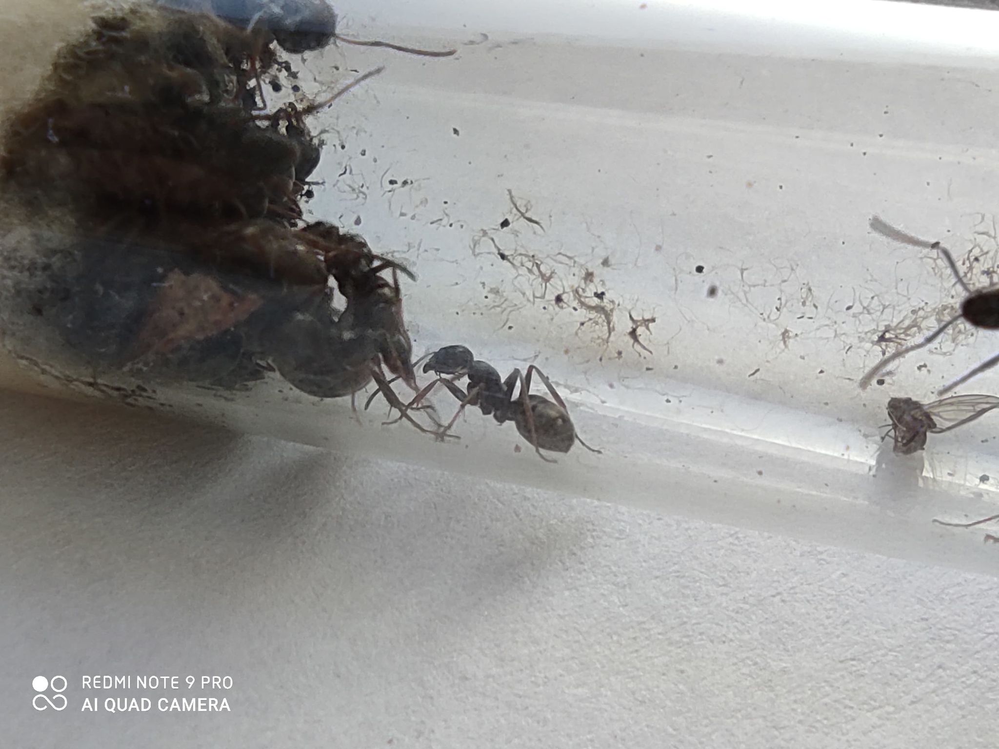 aktualnie nieco się ogarneła ale nie siedzi przywacie tylko barfdziej na szkle obok. coś nie gra. dziś nakarmie. są jakby nieaktywne. przyjdzie do mnie malutkie formi 3,5 x 3,5 może je tam przesiedle.