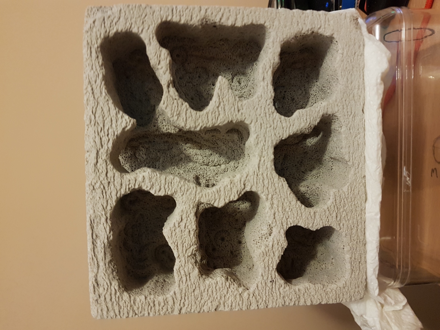Głównie chodziło mi o ochronę gazobetonu, Otwór nawadniający znajduje się na górze po lewej stronie, po wstępnych testach pierwsze 3 komory z lewej ładnie mokną, a naprzeciwko jest sucho. Czytałem, że majory się klują, dopiero kiedy kolonia osiągnie ileś tam robotnic, a ja właśnie dostałem taką kolonię gdzie są dwie robotnice i trzy majory. Hmm