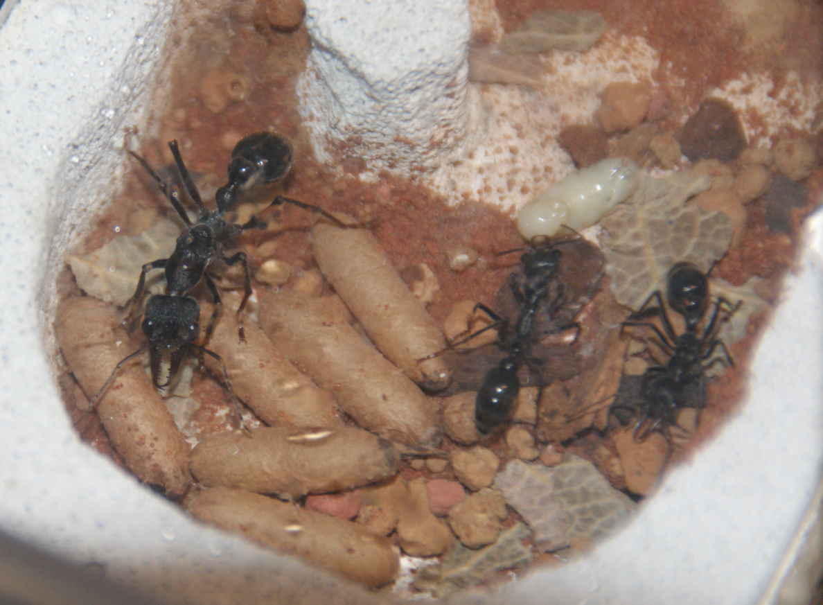 Mrówki przeprowadziły się do gniazda z gazobetonu, wszystkie larwy są żywe, poczwarka wydaję mi się że też. Teraz tygodniowy spokój i liczę na otwartą poczwarkę:)