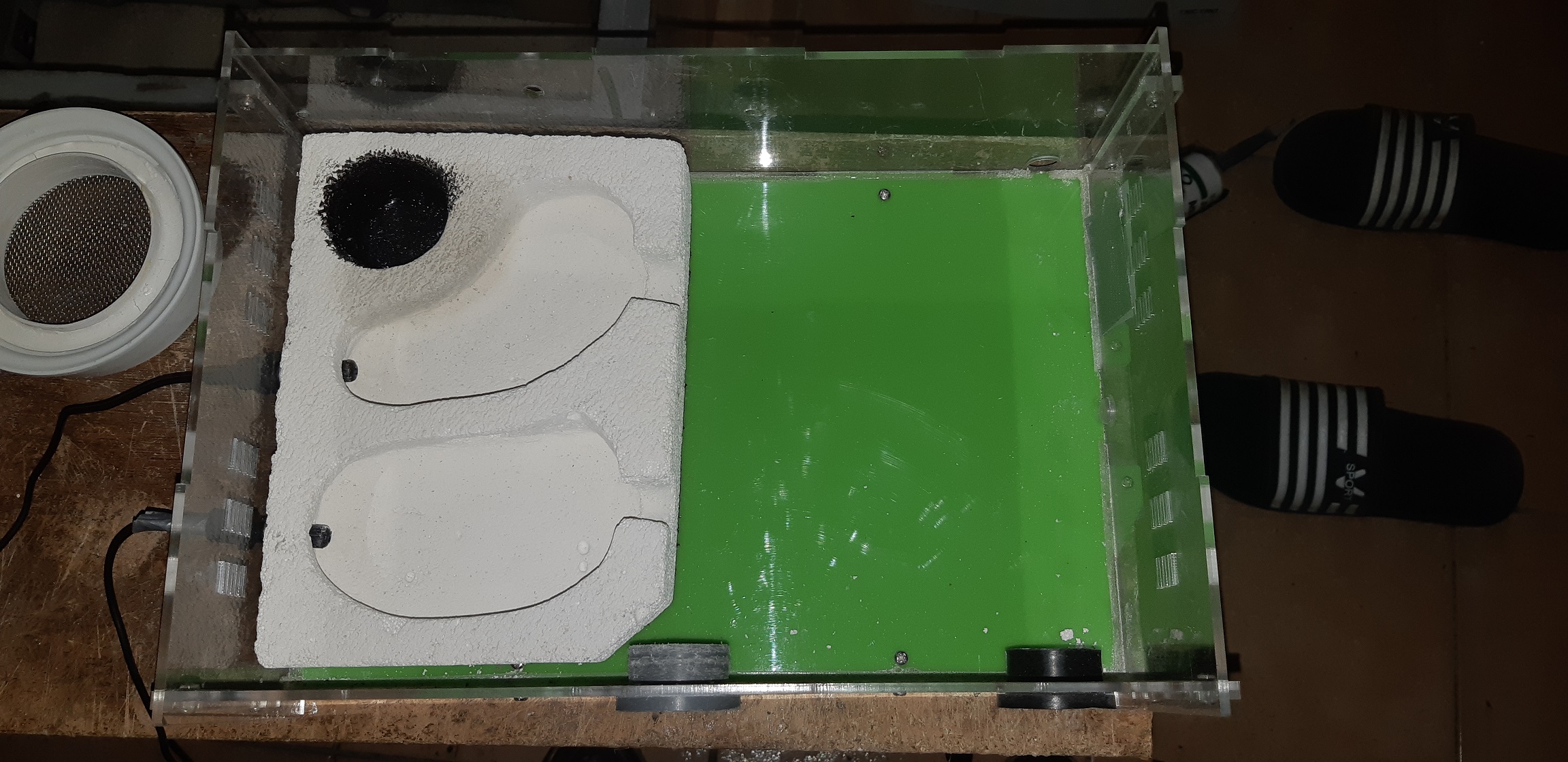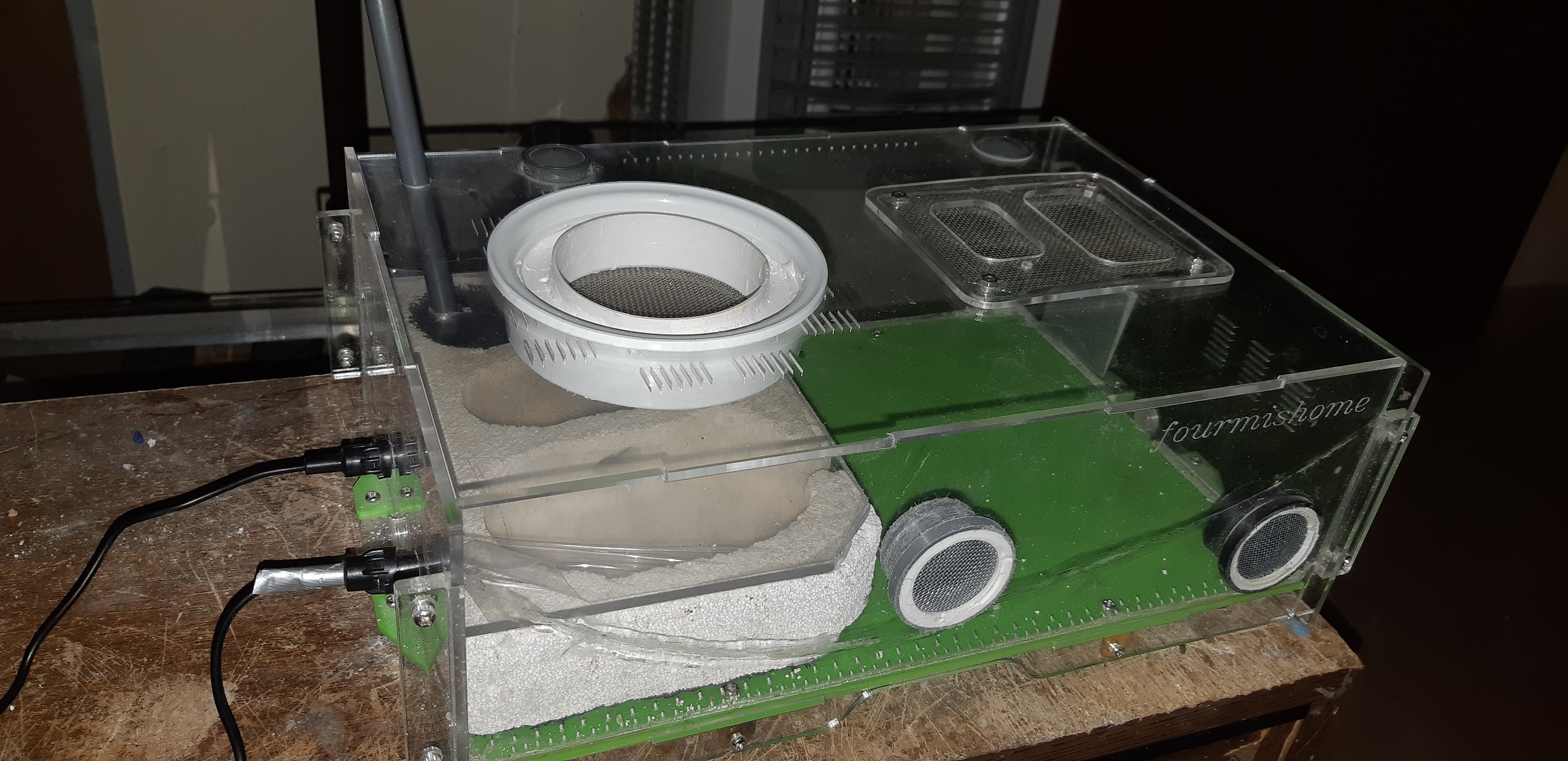 Zrobiłem gniazdo z gazobetonu które umieściłem na arenie(przykryte plexą)jedna komora