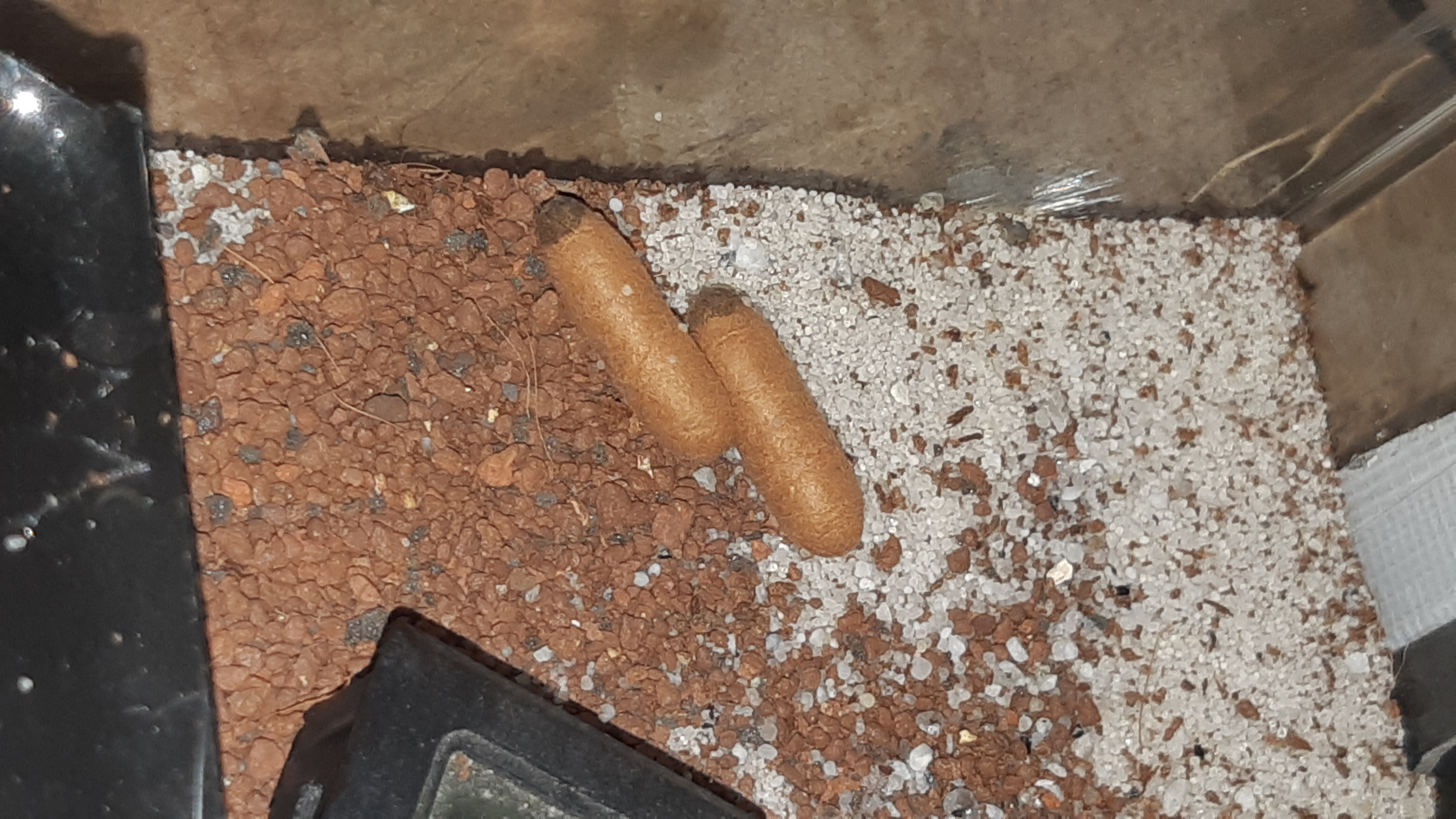 więc położyłem im tam pojemnik w którym teraz przebywają cały czas z dwoma kokonami i jajkami.