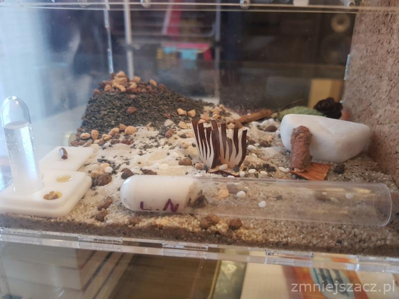 Po paru dniach mrówki przeniosły się do gniazda, wydawało mi się, że wszystko zrobiłem cacy ale jednak nie, bo gniazdo okazało się za duże jak na tak małą kolonie.