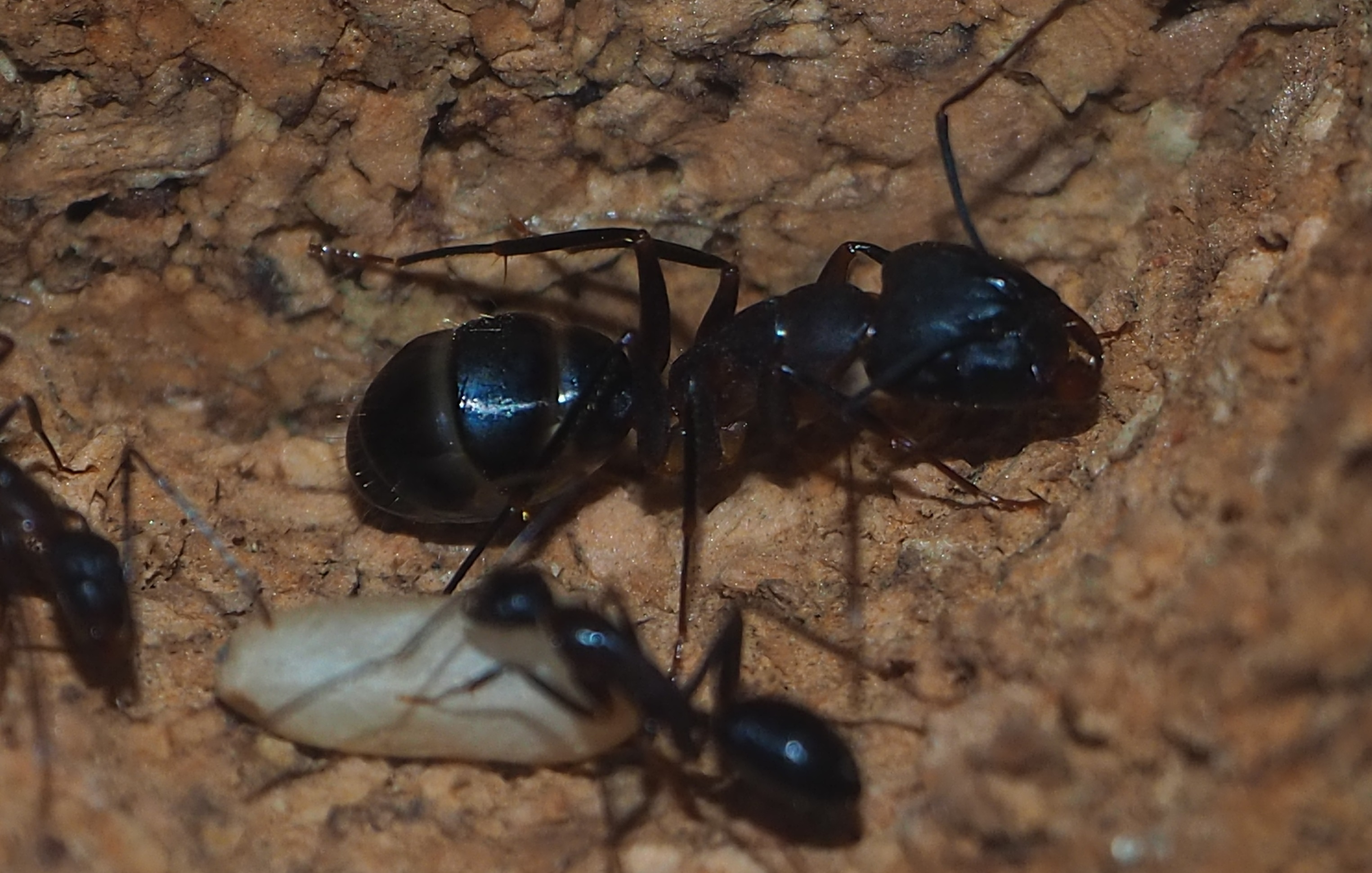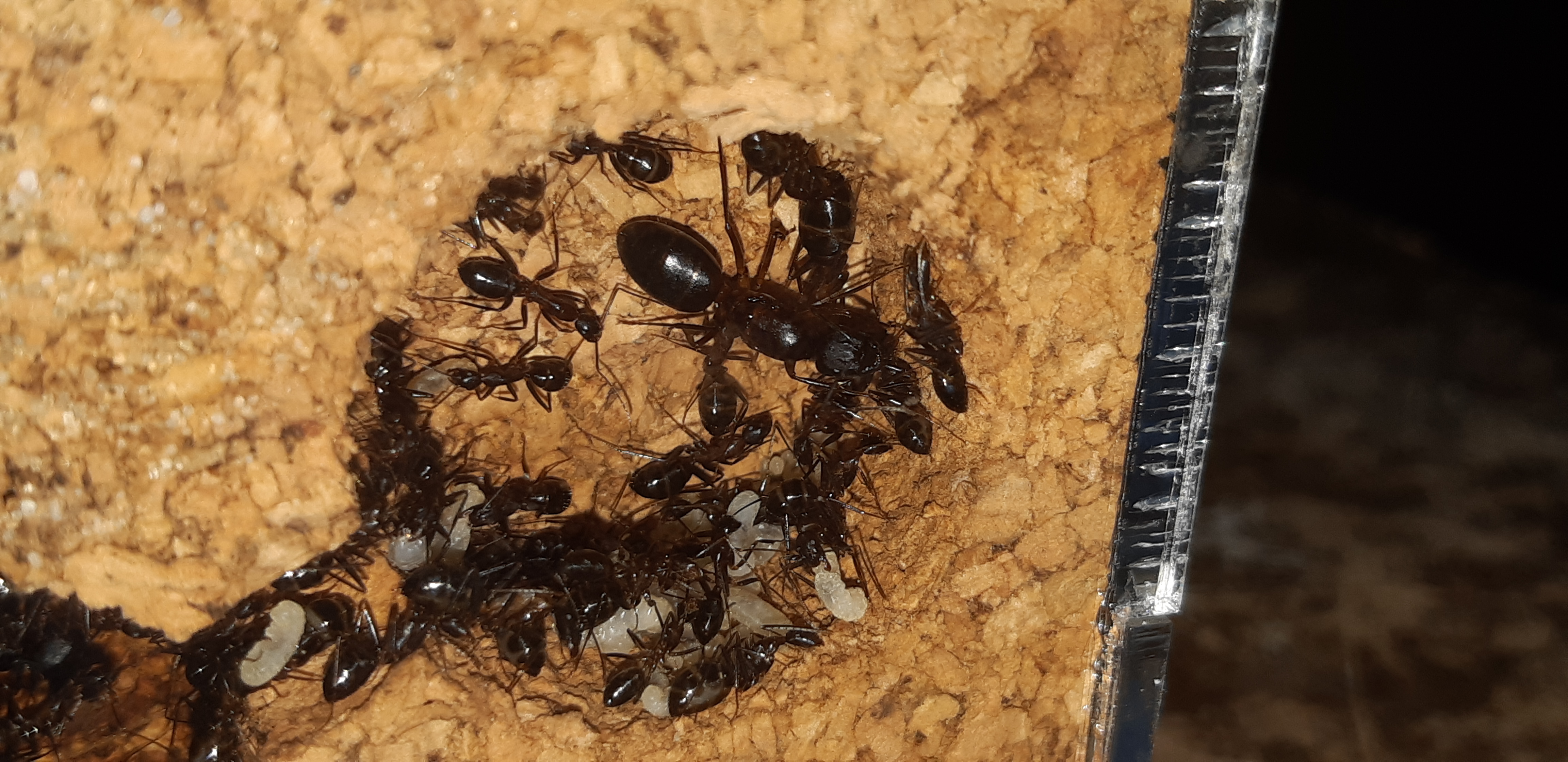 Super wyglada ta krolowa. Ja mam tylko Messor Barbarus i tez mialem Krolowa+ 4 robotnice przez dlugi czas, pozniej padly 3 robo, zostala jedna i wtedy uswiadomilem sobie, ze jak padnie i ta jedna to koniec. Bo krolowa mimo, iz skladala jaja to je zjadala a mialy wszystko. Zroznicowany pokarm. Wtedy zobaczylem poczwarke, ktorej nie zjadly. Pomyslalem w koncu cos. Byly dwie robotnice. Mysle jest dobrze, wiec dalem im jeszcze wiecej spokoju, ciepla i ciemnosci. Po kilku miesiacach do teraz jestem z nich Tak dumny, ze nie do opisania. Daly sobie rade we dwie wychowac tyle potomstwa. Nie wiem ile ich moze byc teraz przez te kilka miesiecy, ale krolowa ciagle salada jaja, przybywa mrówek, sa juz mrowki wieksze od innych, z czerwonymi glowami. Nigdy czegos Tak fantastycznego nie widzialem. Byly tez upadki. Probowka 22cm dlugosci. Chcialem wymienic pokarm po 24h, byly bardzo ruchliwe i stracilem 5 robo. Jak dla mnie nawet teraz strata jednej to smutek. Mrowki bardzo aktywne, Zaatakowaly patyczek do uszu, jak czyscilem probowke i poszlo. Pierwszy raz Tak zaatakowaly w grupie. Dobrze, ze w tych wiekszych zadnych strat. Zbieraczki chcac uchronic pokarm przede mna zaatakowaly. No nic zdarza sie. Nastepnego dnia w kolonii juz panowal spokoj. Ehh co za emocje. Chyba powinienem dziennik zalozyc bo duzo tego.