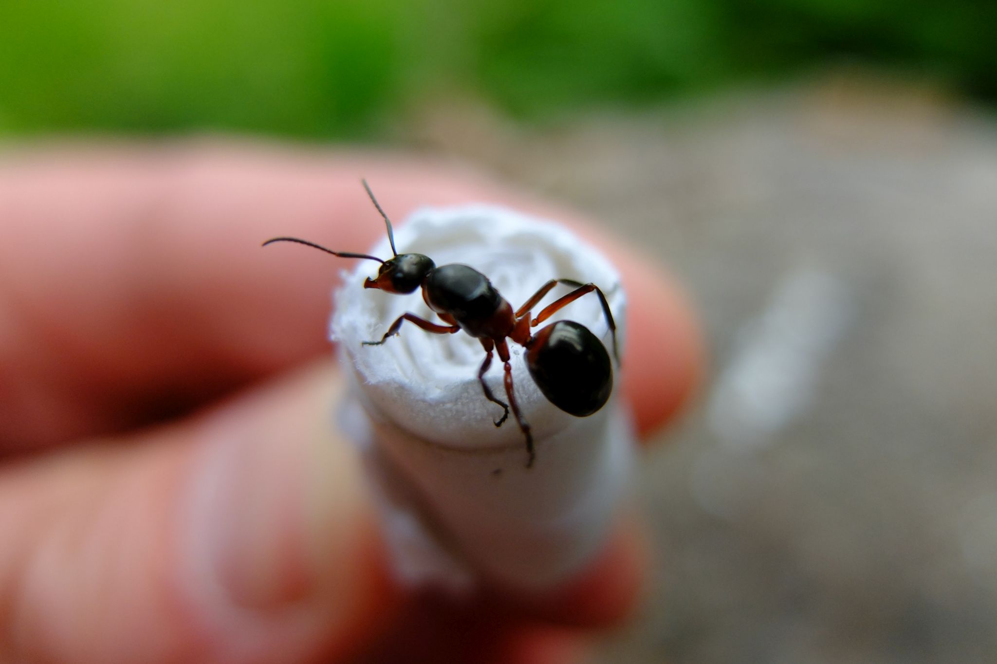 Tydzień temu złapałem na chodniku dużą ok. 10mm czarną mrówkę. Z opisów wynika, że to prawdopodobnie Lasius Niger. Wyraźnych zdjęć nie jestem w stanie wykonać. Wydaje mi się, że mrówka ma ślady po skrzydłach ale głowy nie dam.