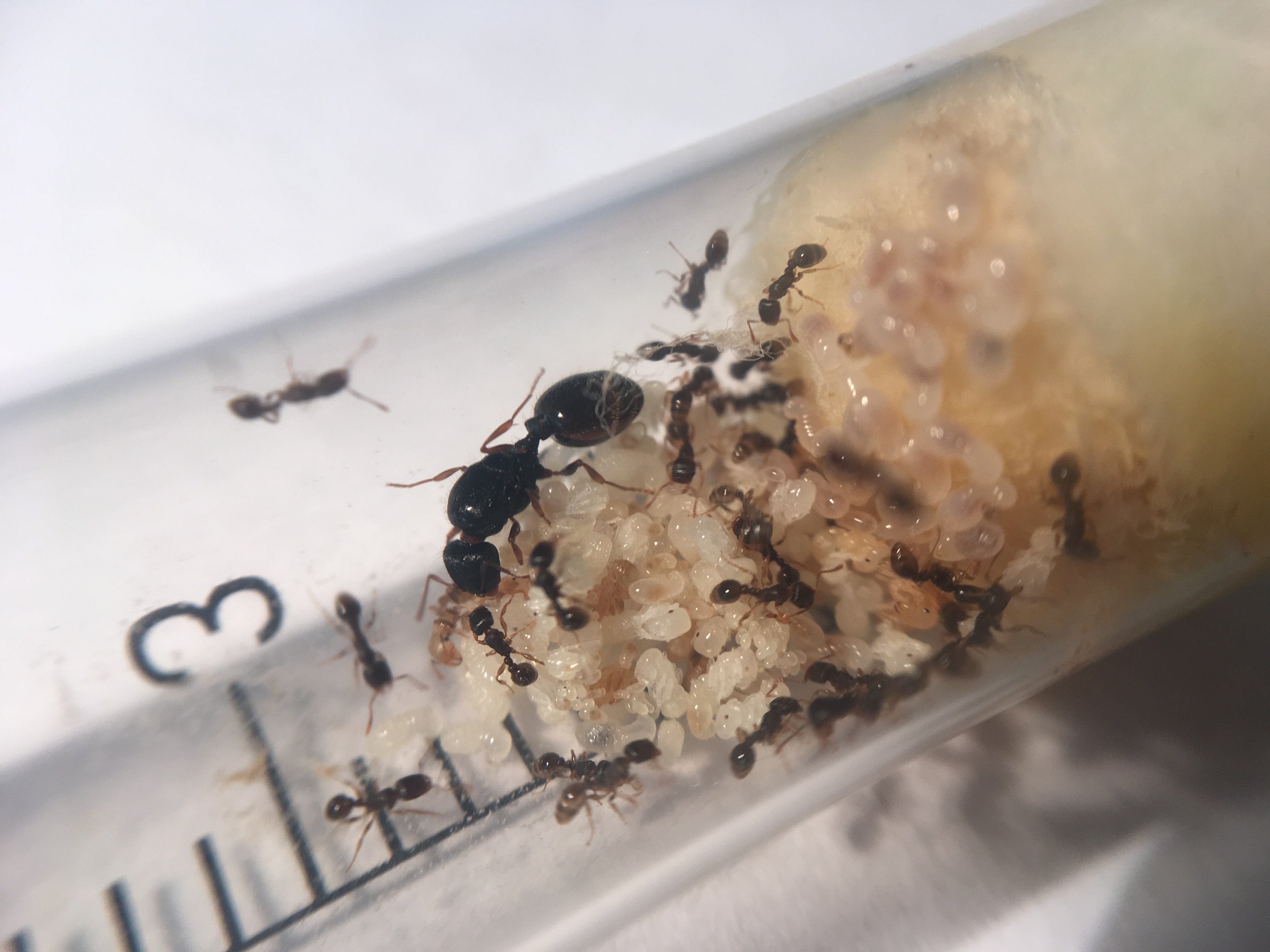 Tetramorium mam od 26.06, dziś najlepsza kolonia liczy około 25 robotnic, ma górkę larw i poczwarek, inne ~10-15 robo, więc myślę że później te 100 robotnic miesięcznie jest jak najbardziej realne