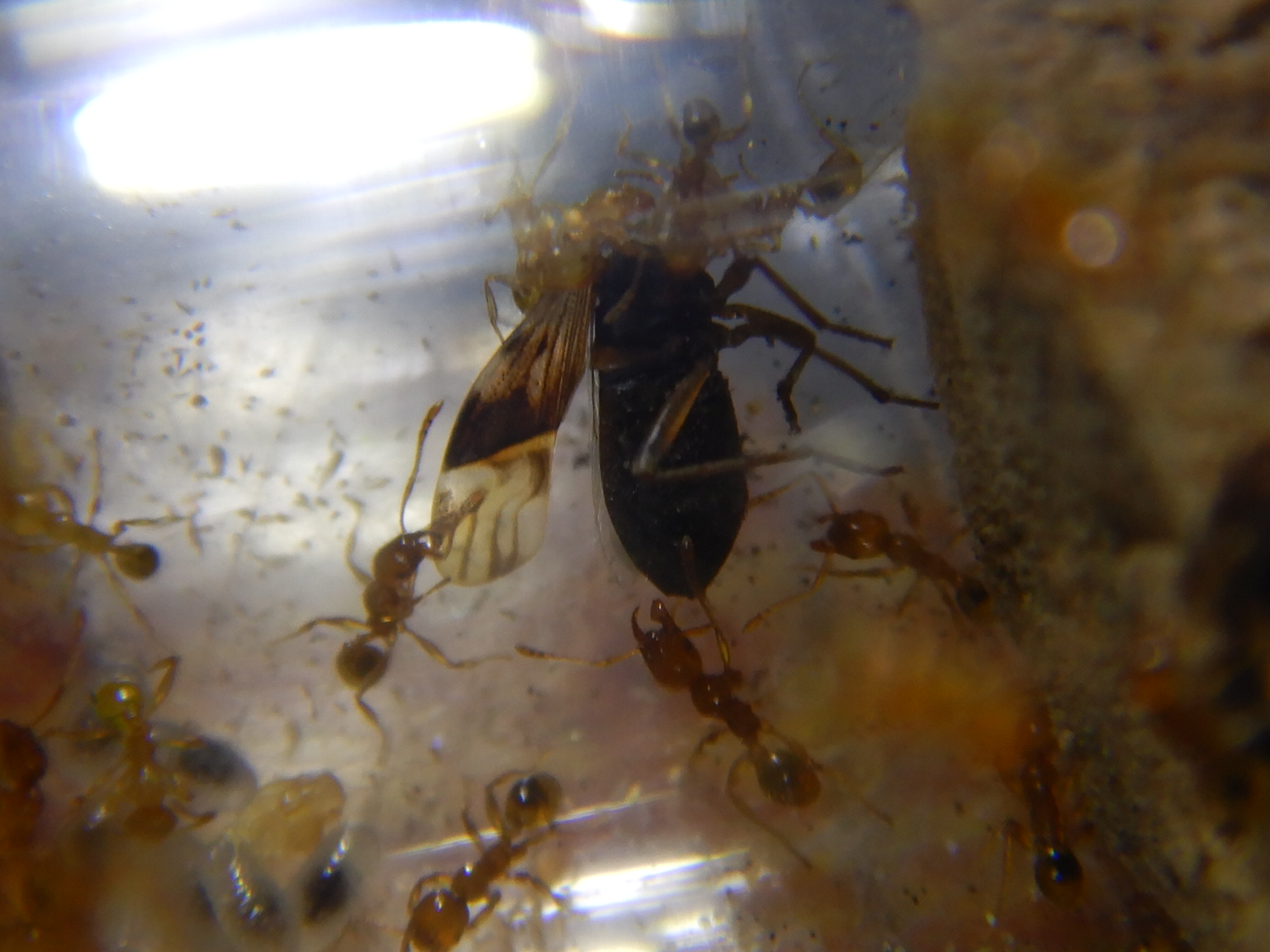 Następnie przyszedł czas na znalezienie smakujących im robaczków. Postawiłem na świerszcze. Pokroiłem jednego na małe kawałki, ale mrówki nawet na niego nie spojżały. Próbowałem też z owocówkami - ten sam rezultat. W końcu zrezygnowany wrzuciłem im jednego świerszcza w całości i jakie było moje zdziwienie, gdy ponownie zerknąłem do mrówek - świerszcz zniknął. Od tego czasu wiem, że wolą owady w całości.