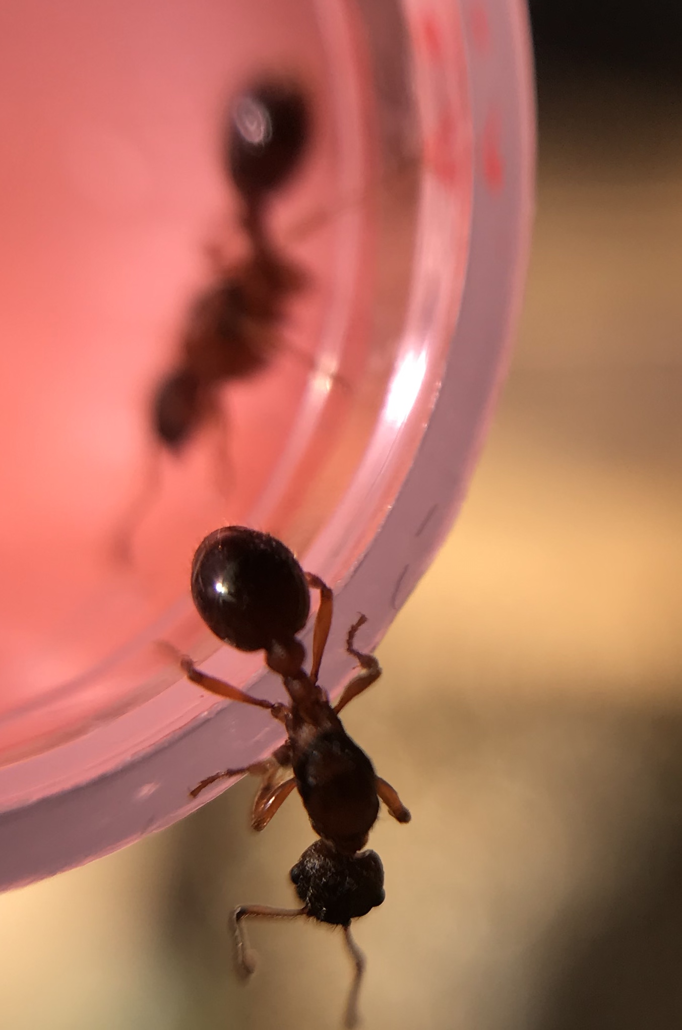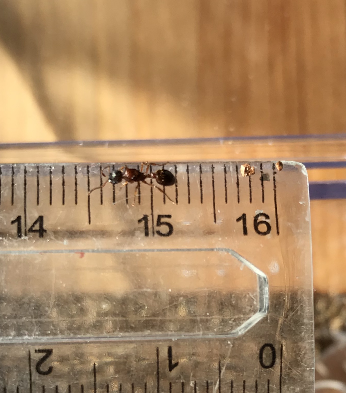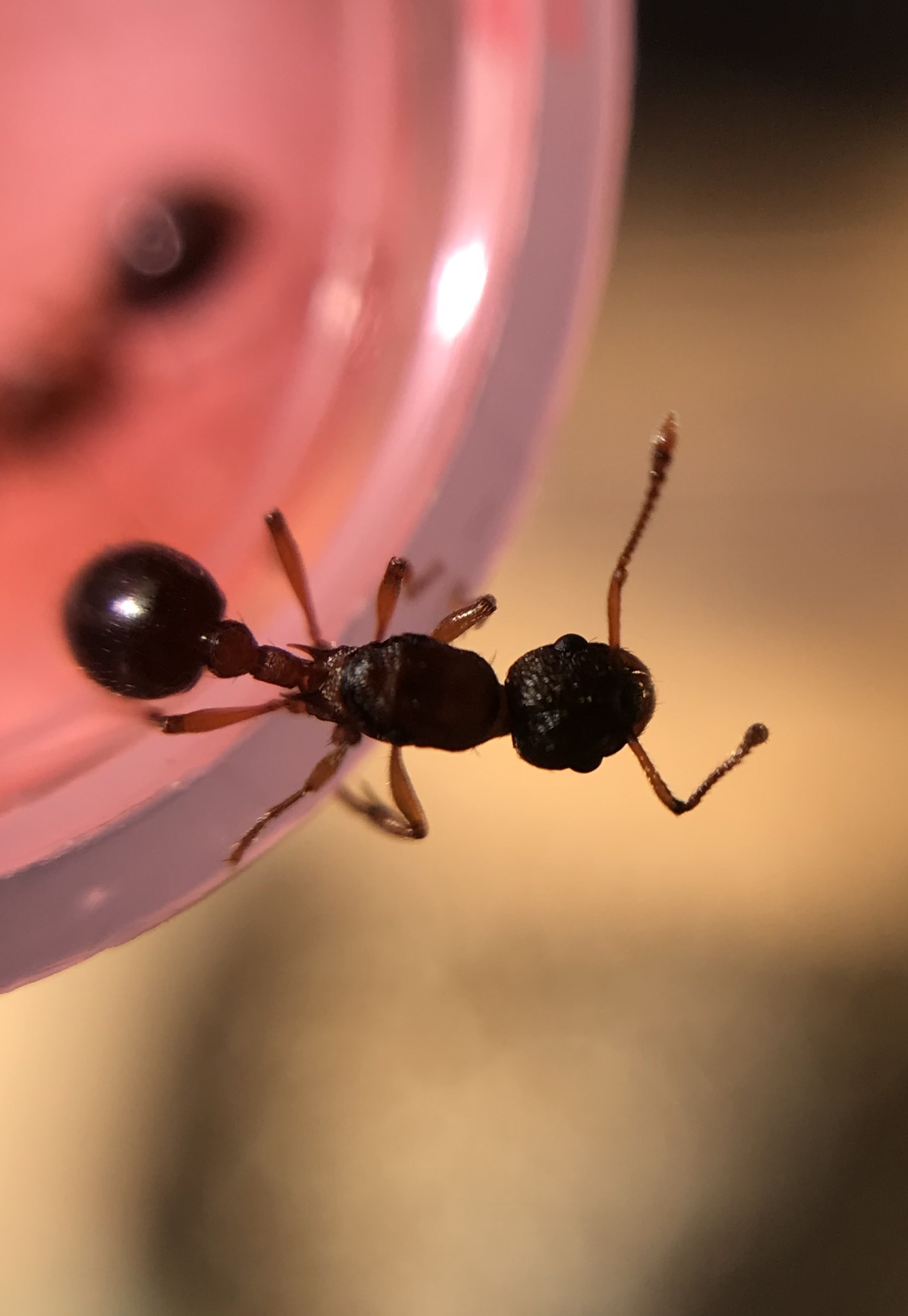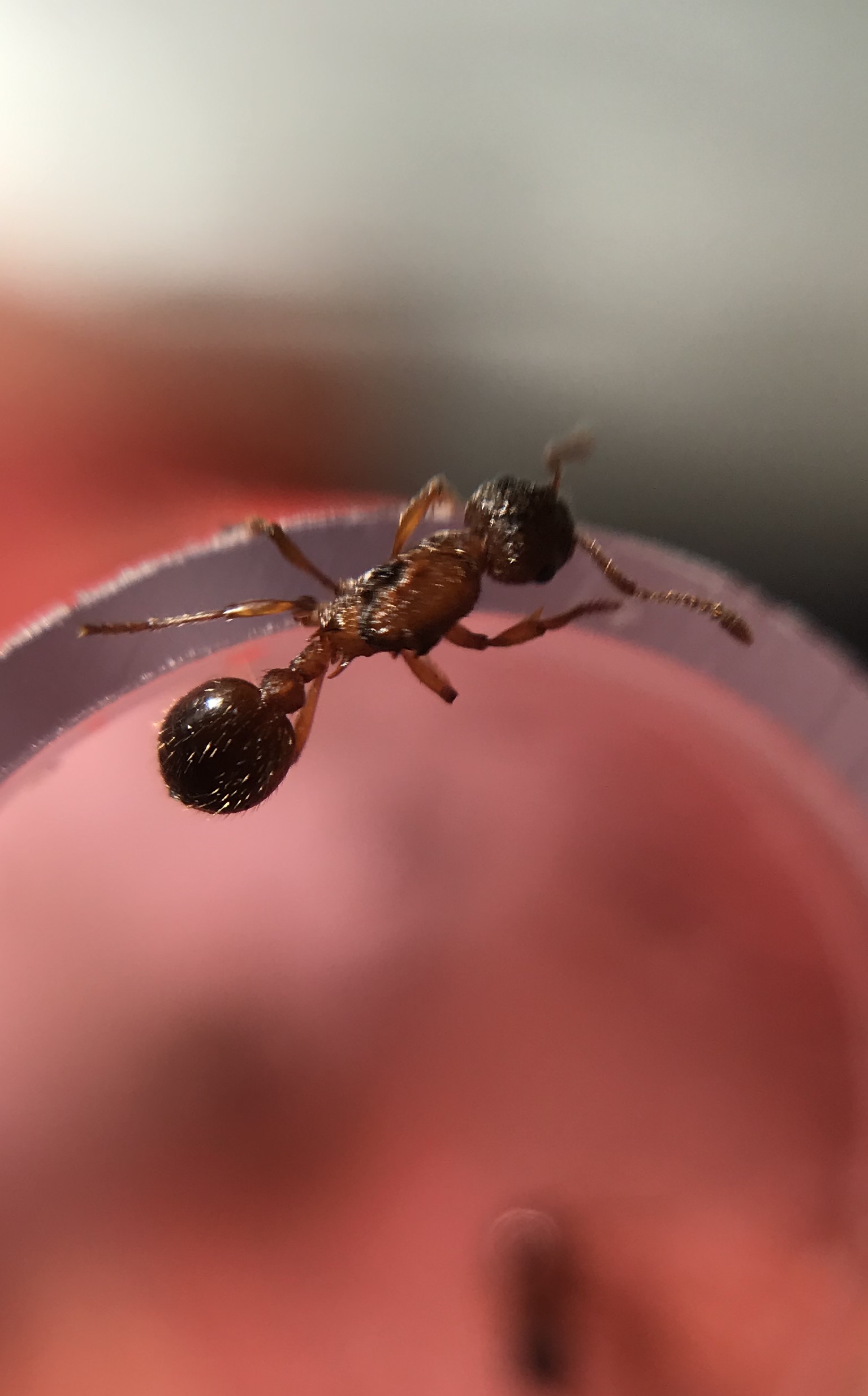 Witam! Kilka dni temu wrzuciłam pytanie o mrówkę - znaleziona, podobna do jednej z mojej kolonii (myrmica rubra), nie byłam pewna jaki to gatunek. Dostałam podpowiedzi że może to być królowa myrmica rubra lub robotnica manica rubida. Dziś znalazłam drugą. Udało mi się zrobić wyrazniejsze zdjęcia, wrzucam z prośbą o identyfikację.