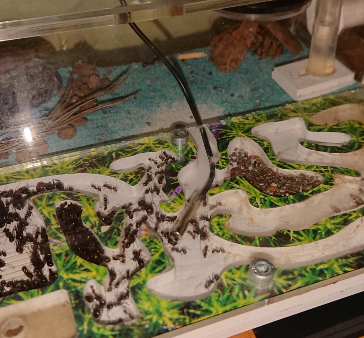 Patrząc na zdjęcie. Jeśli mata jest po prawej a chyba tak jest, a wszystkie mrówy poszły na lewo gdzie jest zimniej z tego mi wynika że mają za ciepło.