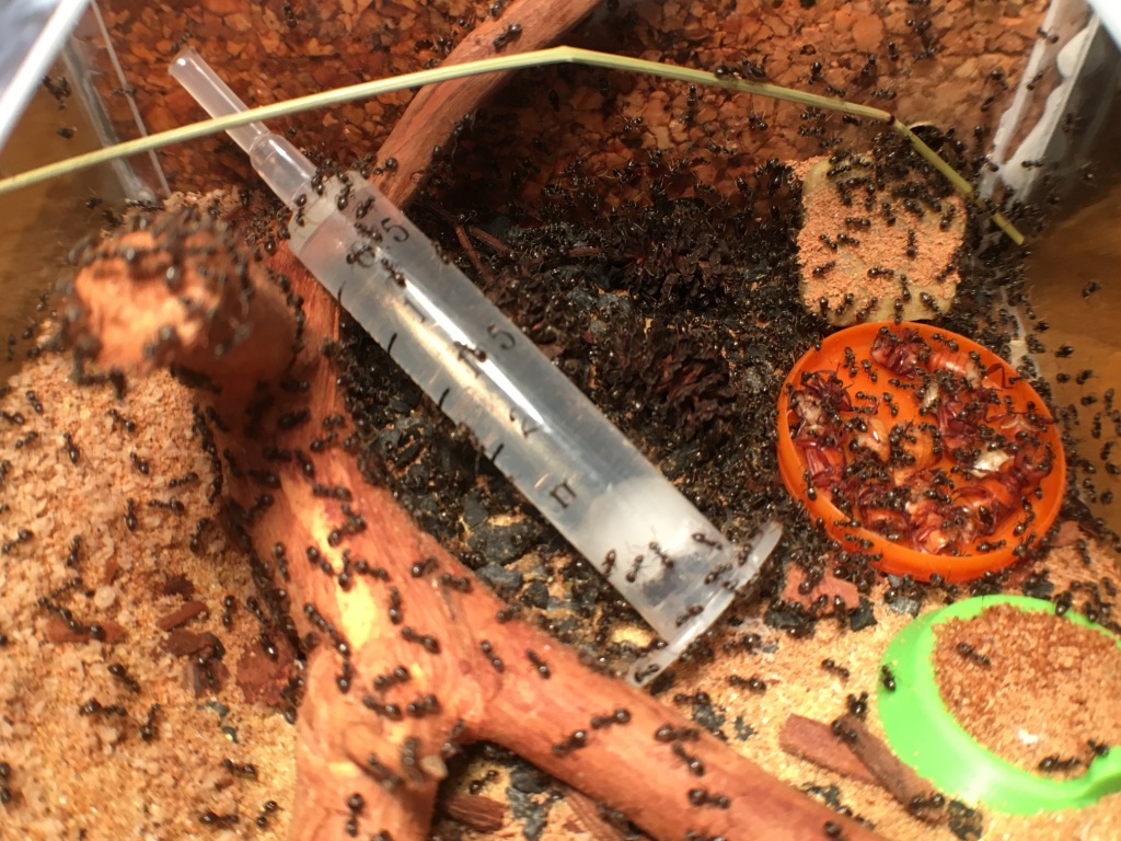 Moje Myrmica sp. mają ok. 100 robotnic. Czasami, gdy wpatruję się co robią, to zasłaniam światło i królowe normalnie sobie wychodzą z gniazda.slodkie_ciacho pisze: wt 23 cze, 2020 Tego to nie wiem. Ale ilość mrówek przebywających na arenie zależy od wielkości koloni i samej areny. Gdy arena jest mała to mrówki traktują ją jak część gniazda, jak np u mnie: