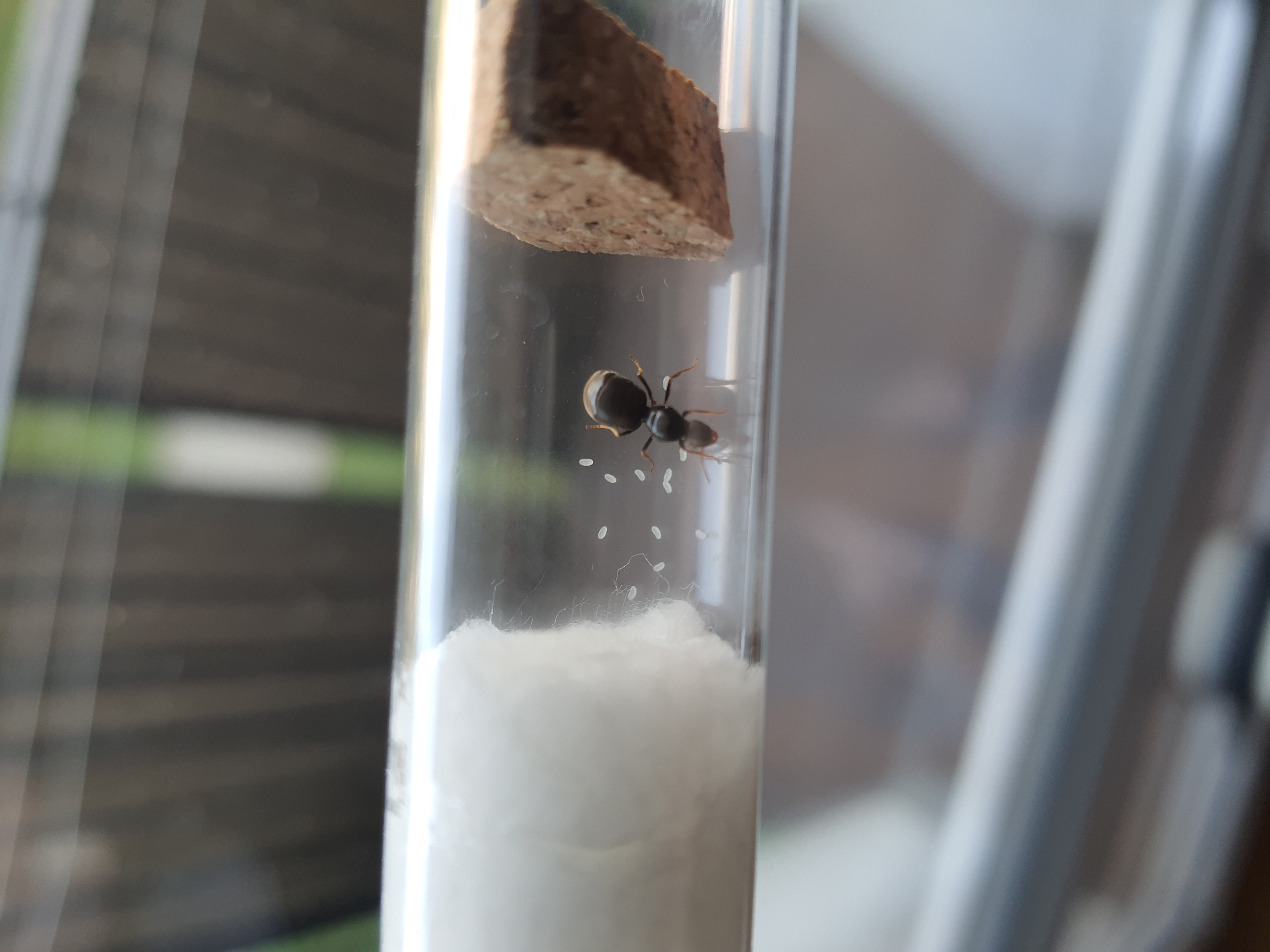 Pierwsze słyszę żeby czułko odpadło z powodu pasożyta. Gdy są pasożyty to królowe dziwnie się zachowują (np są osowiałe, drgają im odnóża, ostatnio u mnieflavus ciągle szła, mimo że miała ścianę przed sobą to nadal napierała na nią) lub powiększa im się odwłok z którego w końcu wychodzi jakiś nicień lub coś innego. Brak czułka jest raczej oznaką walki, albo jakoś rozdzieliła się z gniazda założonego w wyniku pleomtriozy gdzie robotnice próbowały ją rozczłonkować.Mkdrwal pisze: wt 03 sie, 2021 1. Królowa nie posiada jednej czułki, co wyczytałem że może świadczyć o posiadaniu pasożytów