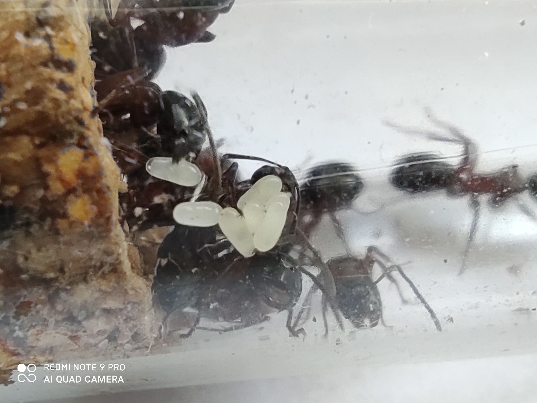 Mrówki radzą sobie nieźle, mają lekkie dogrzewanie, dużo potomstwa. Poczwarki dalej nieotwarte nie wiem z jakiego powodu. Jedna nieco zczerniała.