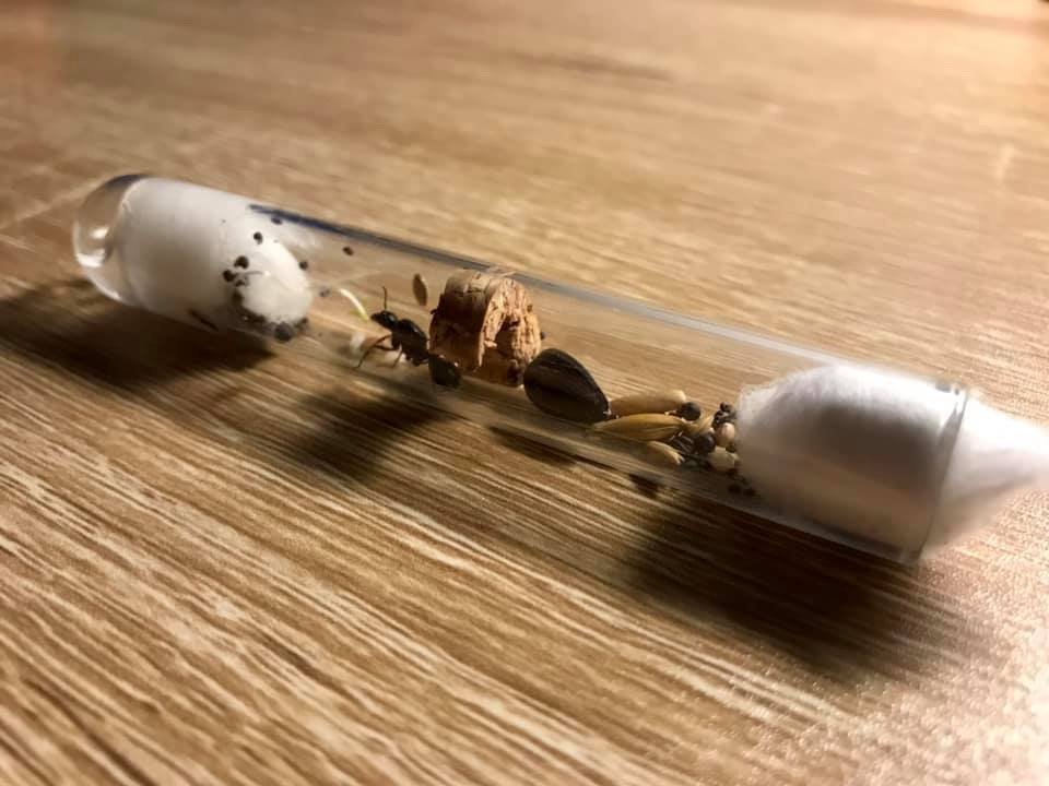 Przez eksperymenty z próbówkami do hodowli mrówek populacja mojej kolonii spadła z wielu jaj, larw, 2 robotnic i królowej do... tylko samotnej królowej. W skrócie: wata przesiąkła i zalała próbówkę ojaglupek: królowej na szczęście udało się uratować. Szczegółowo temat omówiłem w filmie na kanale.
