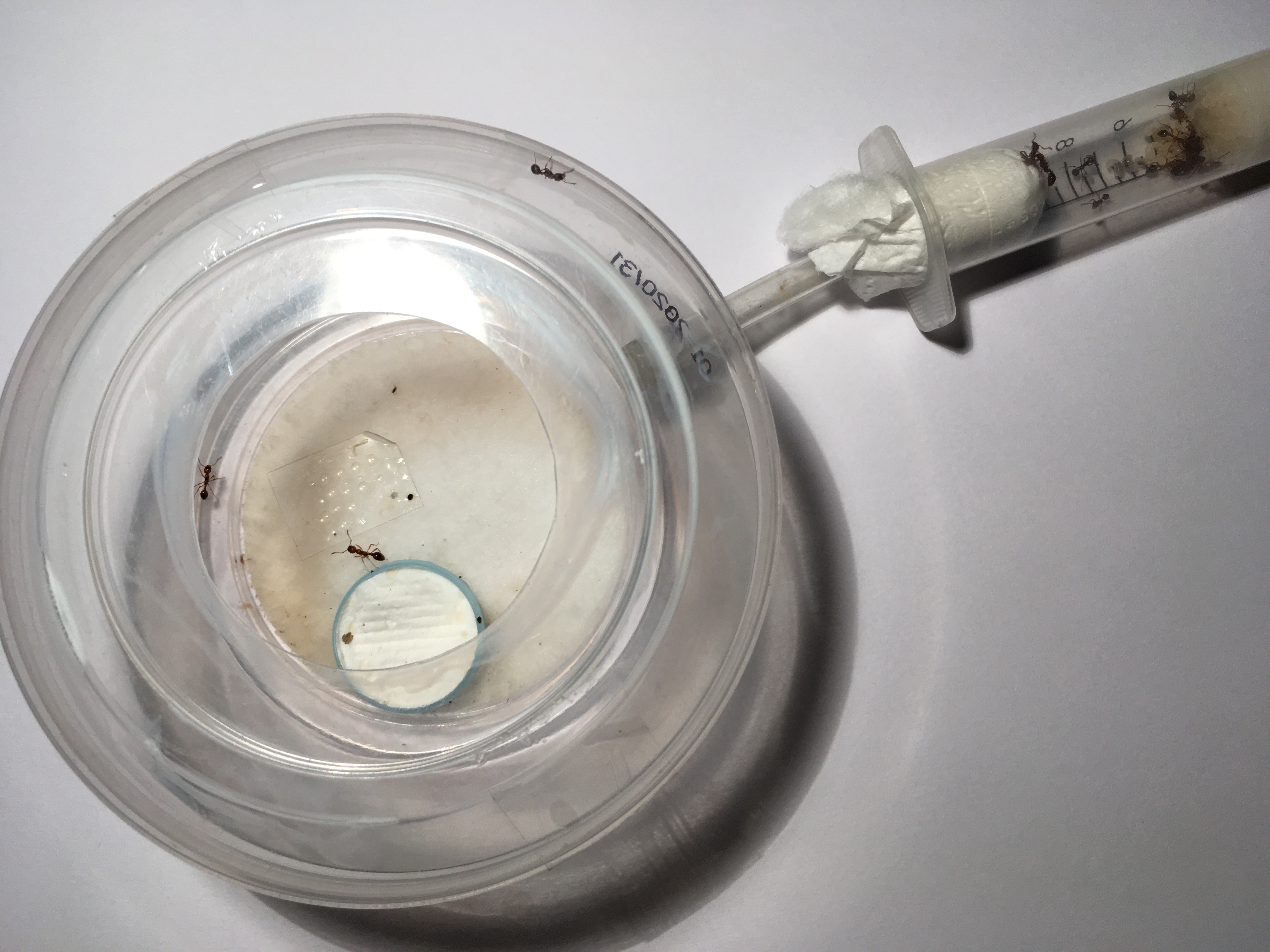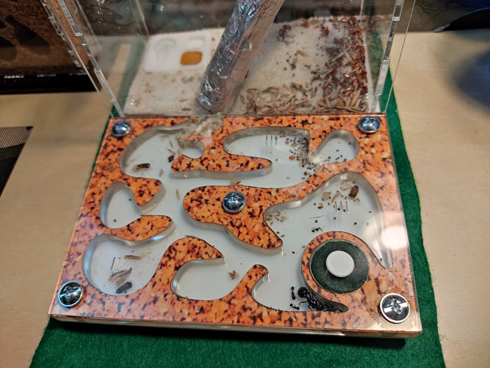 Wszystkie moje mrówki siedzą wbite w kącie włącznie z królową, jeszcze w środę królowa była w oddzielnym pomieszczeniu.