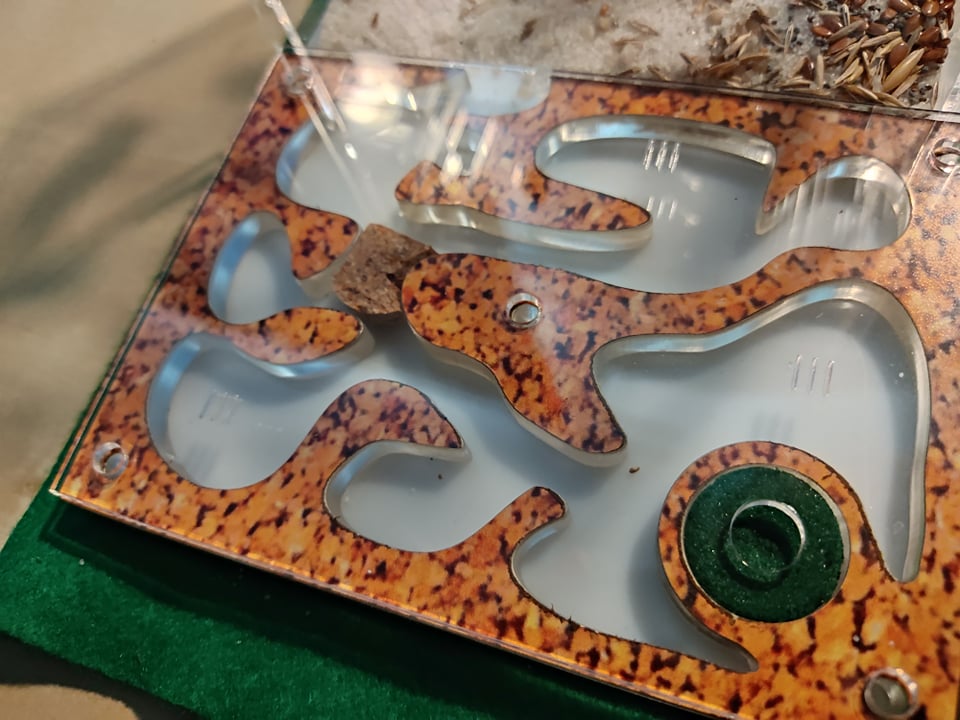 Na arenę bądź połączyć probówkę z areną możliwe KRÓTKIM wężykiem i to na niej karmić, jak np u Manica rubida które miałem:
