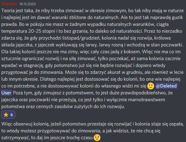 - Ogólnie zimuje się mrówki krajowe jak i niektóre egoztyki żeby zwiększyć żywotność Q, a po zimowaniu ma ,,kopa" i lepiej czerwi (składa jajeczka)