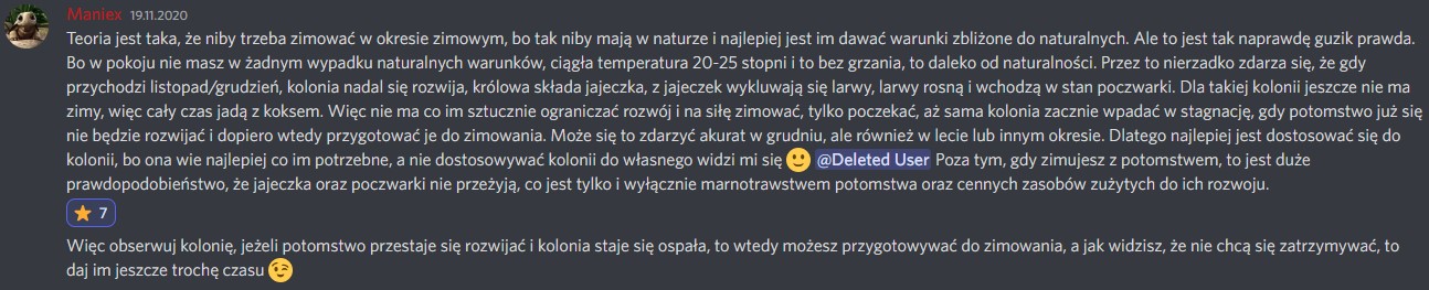 Za ok: miesiąc planuję je zahibernować. Mrówki wychodzą na arenę niechętnie, tylko po jedzenie i na zwiady. Królowe nie składają jaj i wątpię żeby planowały to robić przed hibernacją. Czy przed zahibernowaniem mogę odłączyć je od areny i włożyć do lodówki samą fiolkę? Obawiam się, czy nie wynikną z tego jakieś problemy dla kolonii.