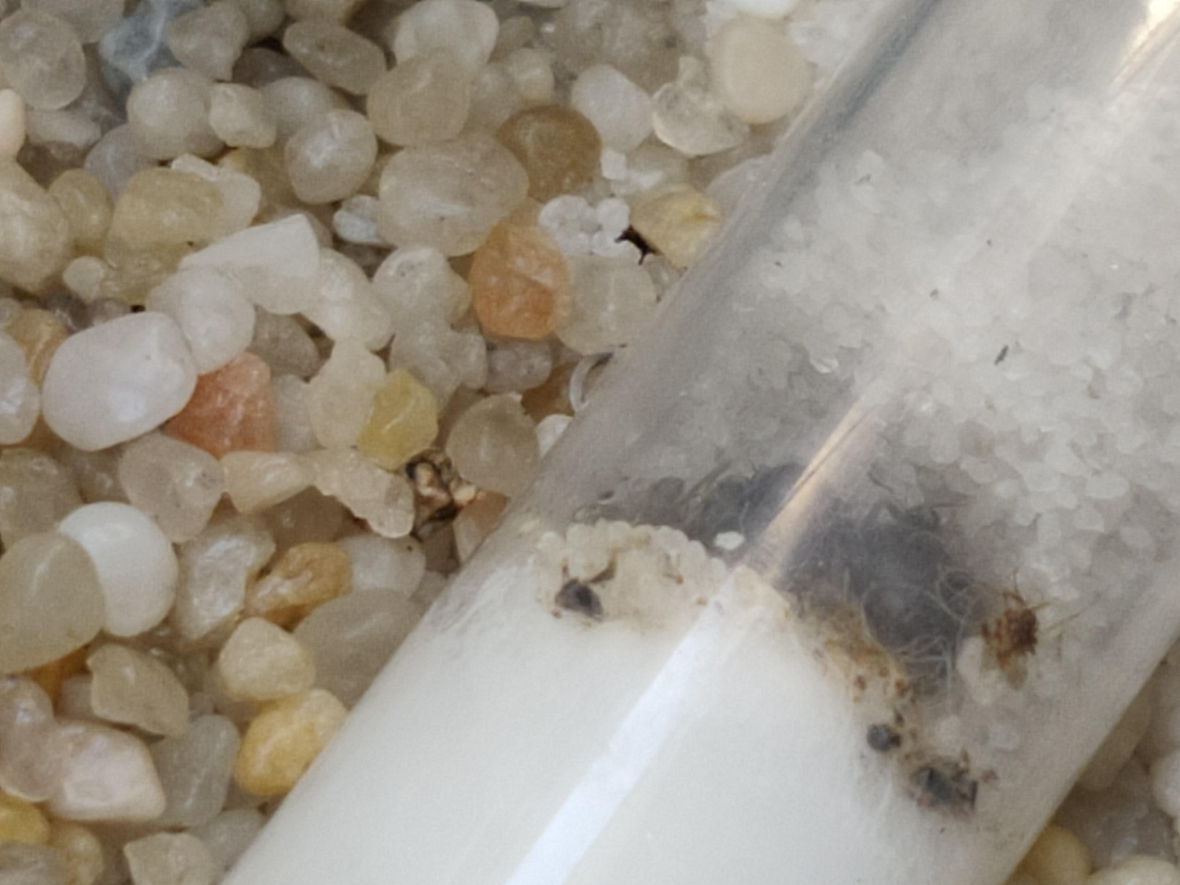 Właściwie w tak małej kolonii nie ma zbytnio aktywności, będzie wzrastać w miarę rozrastania się kolonii. Na zdjęciu widać że mrówki bunkrują się piaskiem, to normalne. Mrówki lubią mieć ciasno i przytulnie.Greg pisze: ndz 30 paź, 2022 Od kilku dni mrówki siedzą skulone w zabudowanej probówce, ściśnięte i właściwie nie obserwuję aktywności poza tym skupiskiem.