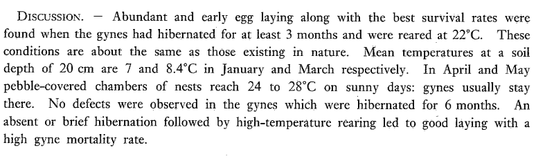 Z Messor barbarus jak z naszymi rodzimymi Formica, bez zimowania często nie ruszą.