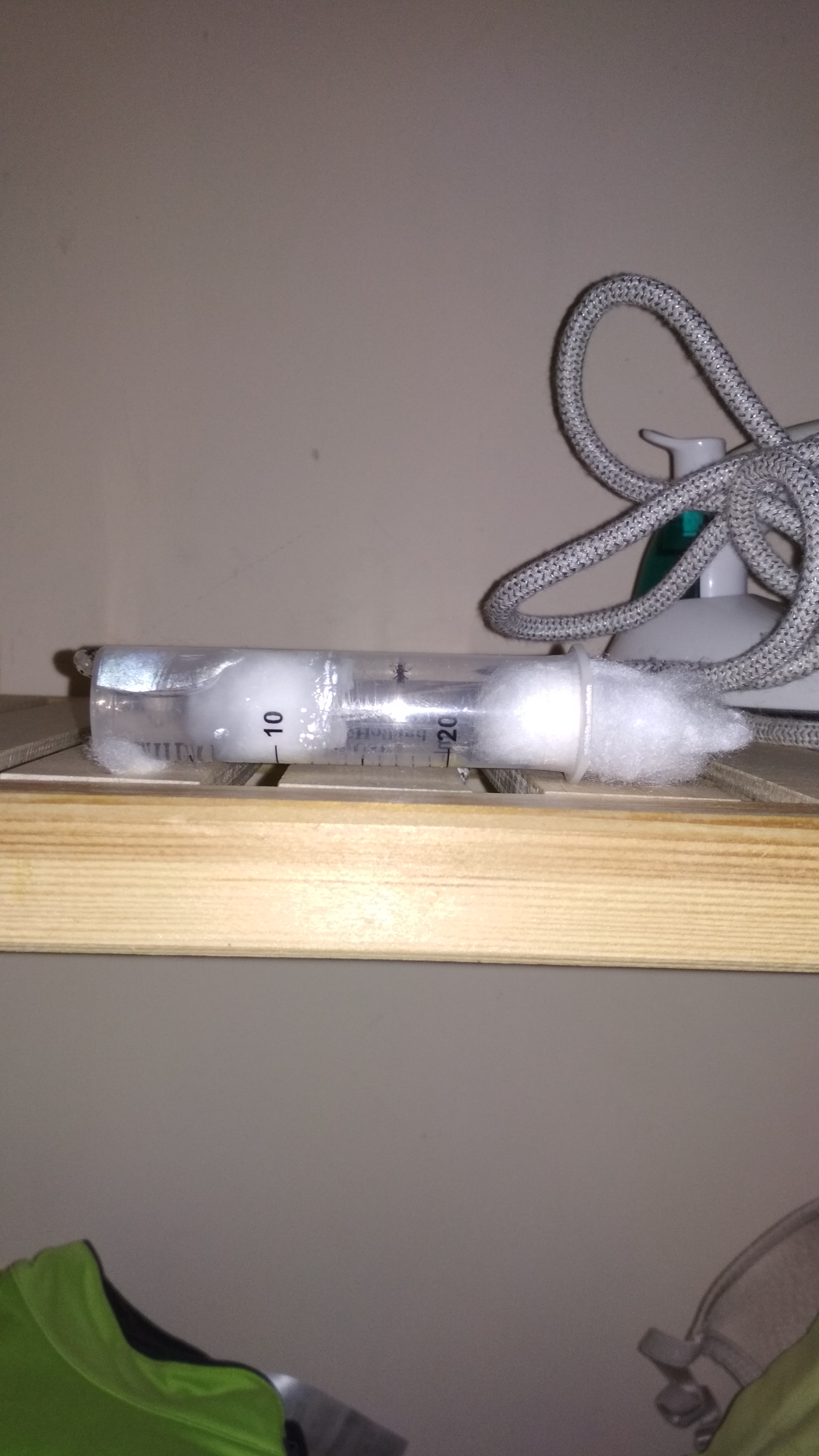 4. Jak najbardziej. Najlepiej też położyć strzykawkę tam, gdzie mrówce nie będą groziły ciągłe wstrząsy. Moja Myrmica ich nie lubiła, więc pojemnik położyłem na koszuli, którą zgiąłem w połowie zasłaniając światło i neutralizując wstrząsy. Wcześniej, gdy wyjmowałem pojemnik z szafki, strasznie się denerwowała.