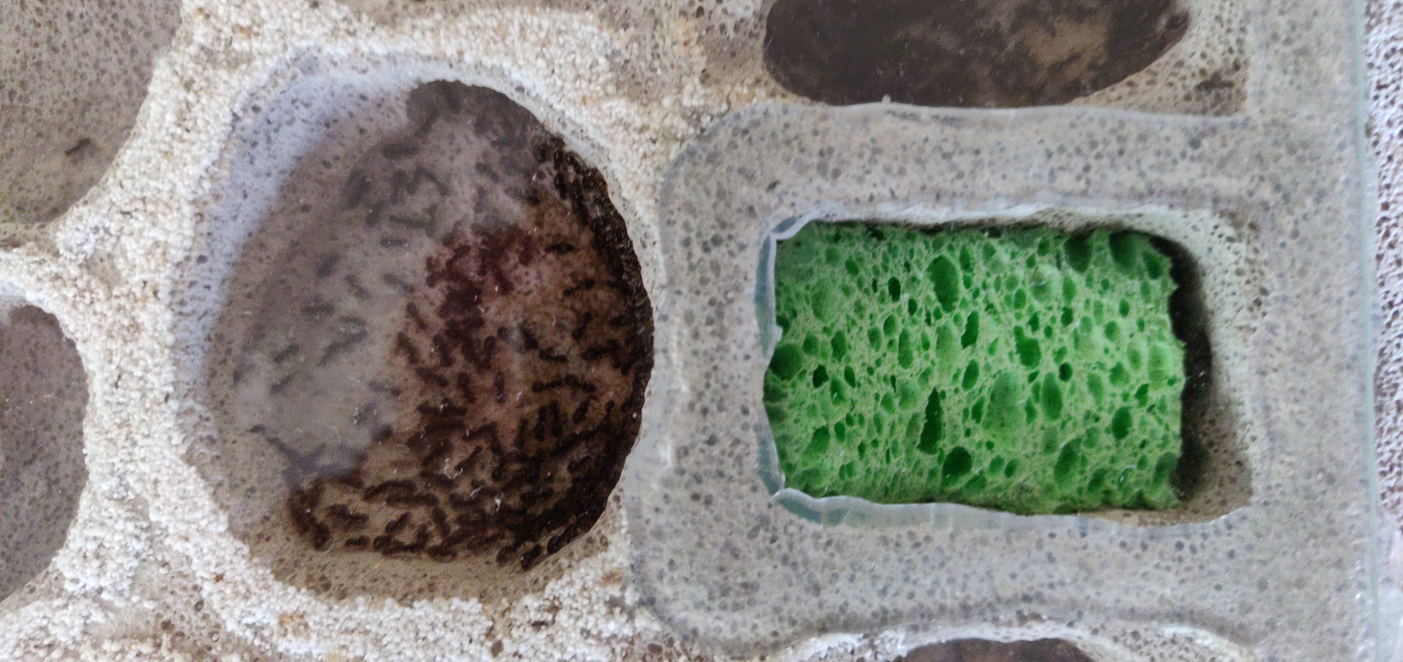 Mam pytanie dotyczące L niger. Moja kolonia rozwijała się do tej pory bardzo prężnie. Od hibernacji z około 30 wzrosła do na oko jakichś 200 sztuk. Ostatnio zaobserwowałem jednak dziwna rzecz. Brakuje poczwarek. Ostatnich kilka zniknęło jakiś tydzień temu. Jaj i larw jest mnóstwo i mam wrażenie że królowa składa nowe (pewny nie jestem) ale z jakiegoś powodu nie przeobrazaja się w poczwarki. Dostają białko w postaci macznikow i/lub kurczaka i jedzenie znika. Do tego rzecz jasna miód. Czy to po prostu stagnacja? Kolonie przeprowadziłem jakiś miesiąc temu do gniazda betonowego własnej roboty z za ciasnego już gniazda 3D