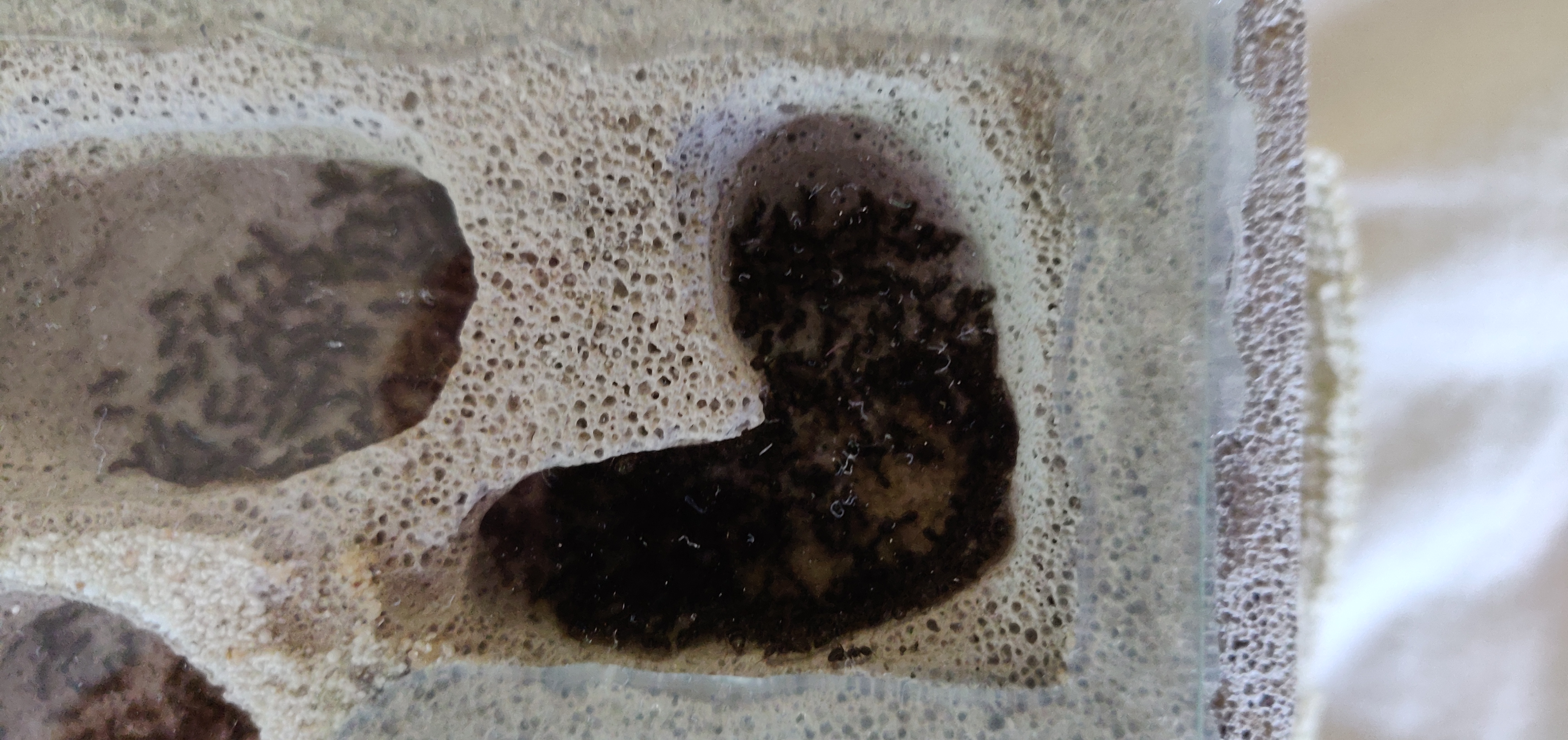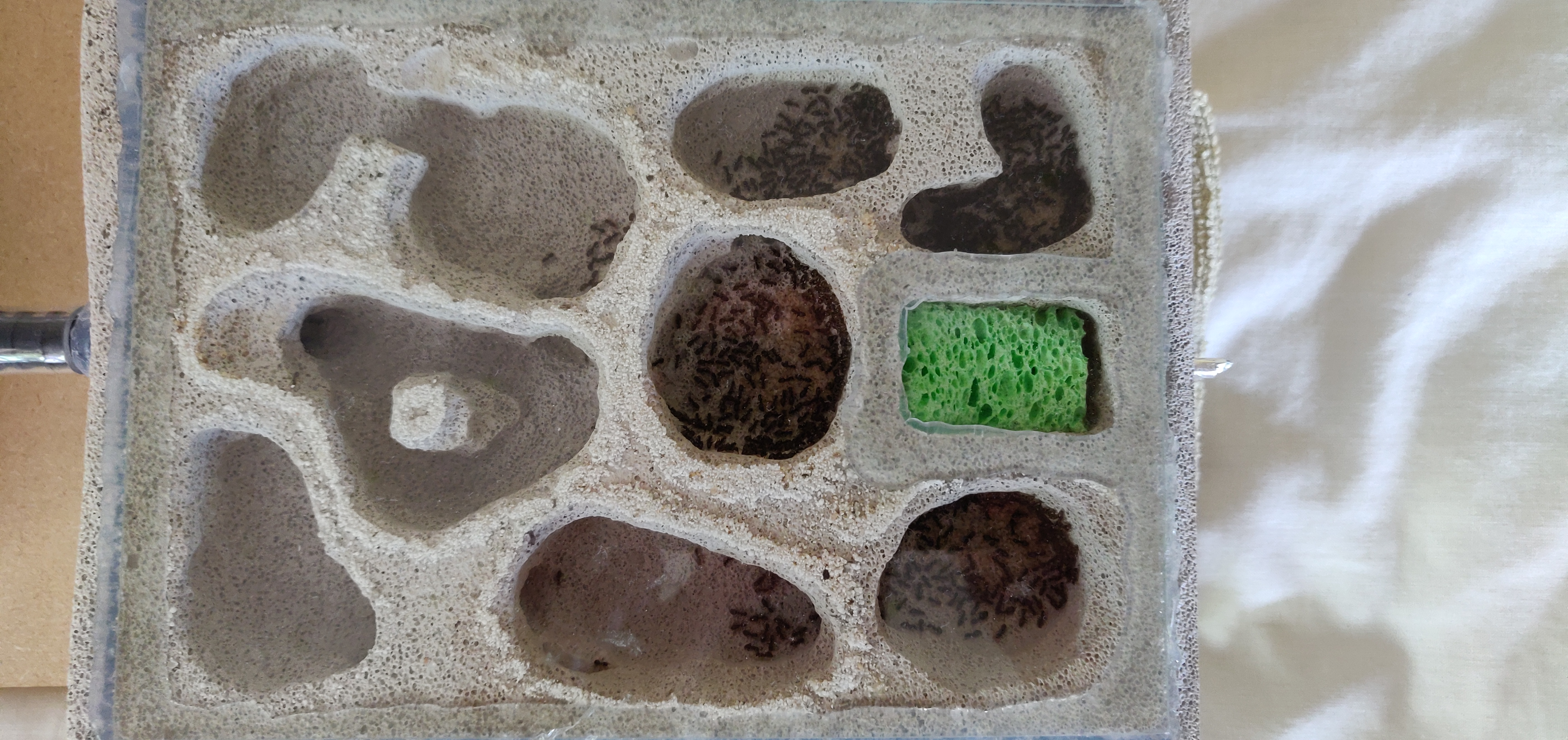 Nie sądzę żeby było zbyt duże. Poza tym przeniosły się same z mniejszego gniazda 3D - nie wyganiałem ich specjalnie a tam miały naprawdę ciasno. Co do stresu to też jakoś nie sądzę - są na regale przykryte czerwoną folią i nikt do nich nie zagląda poza mną przy karmieniu i nawadnianiu a i wtedy folii nie odkrywam.