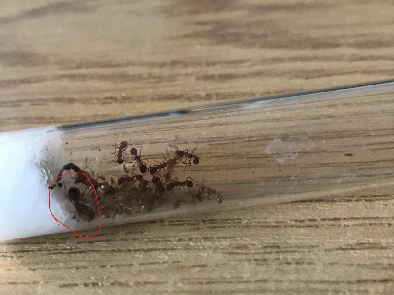 Moje 2 królowe myrmica mają od pierwszego dnia od kiedy je złapałem małe areny na które wychodzą po miód albo mącznika. To królowe półklasztorne. Nie chcę ich zamykać, niech sobie wyjdą od czasu do czasu, przecież to naturalne.