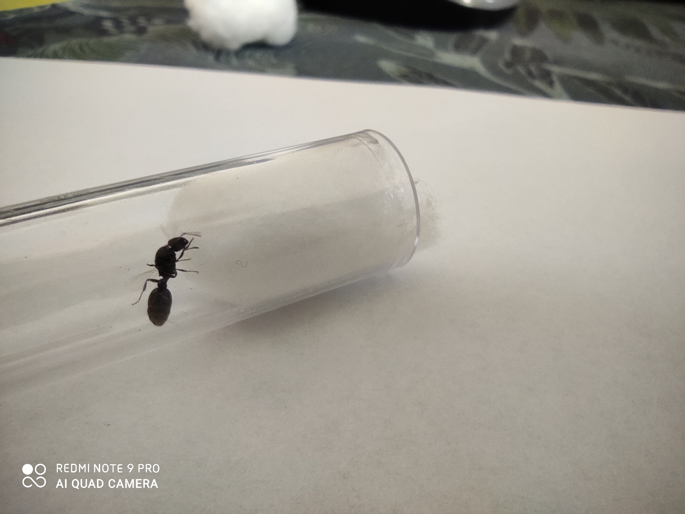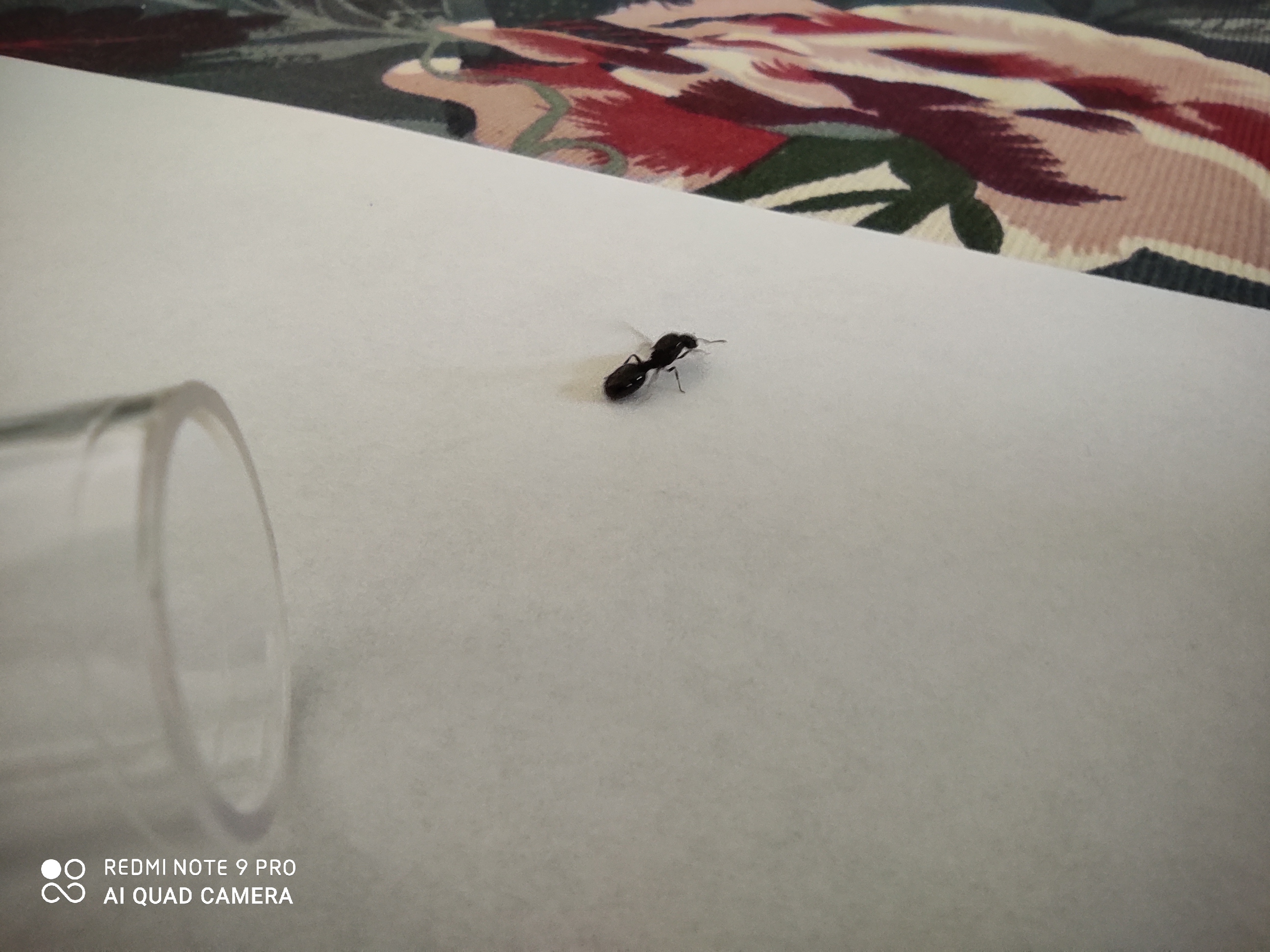 witam :!: dziś na chodniku znalazłem rójkową królową solenopsis fugax albo tetramorium znalazłem ją dokładnie w tym samym miejscu co wczoraj. Tylko że wczoraj znalazłam martwą z pasożytem w odwłoku. Byłem tak uradowany że prawie nie od tańczyłem tańca szczęścia. :naglowie: .a no tak ma jeszcze jedno skrzydło ale wnioskuję że skoro pozostałe odrzuciła jest za plemiona.