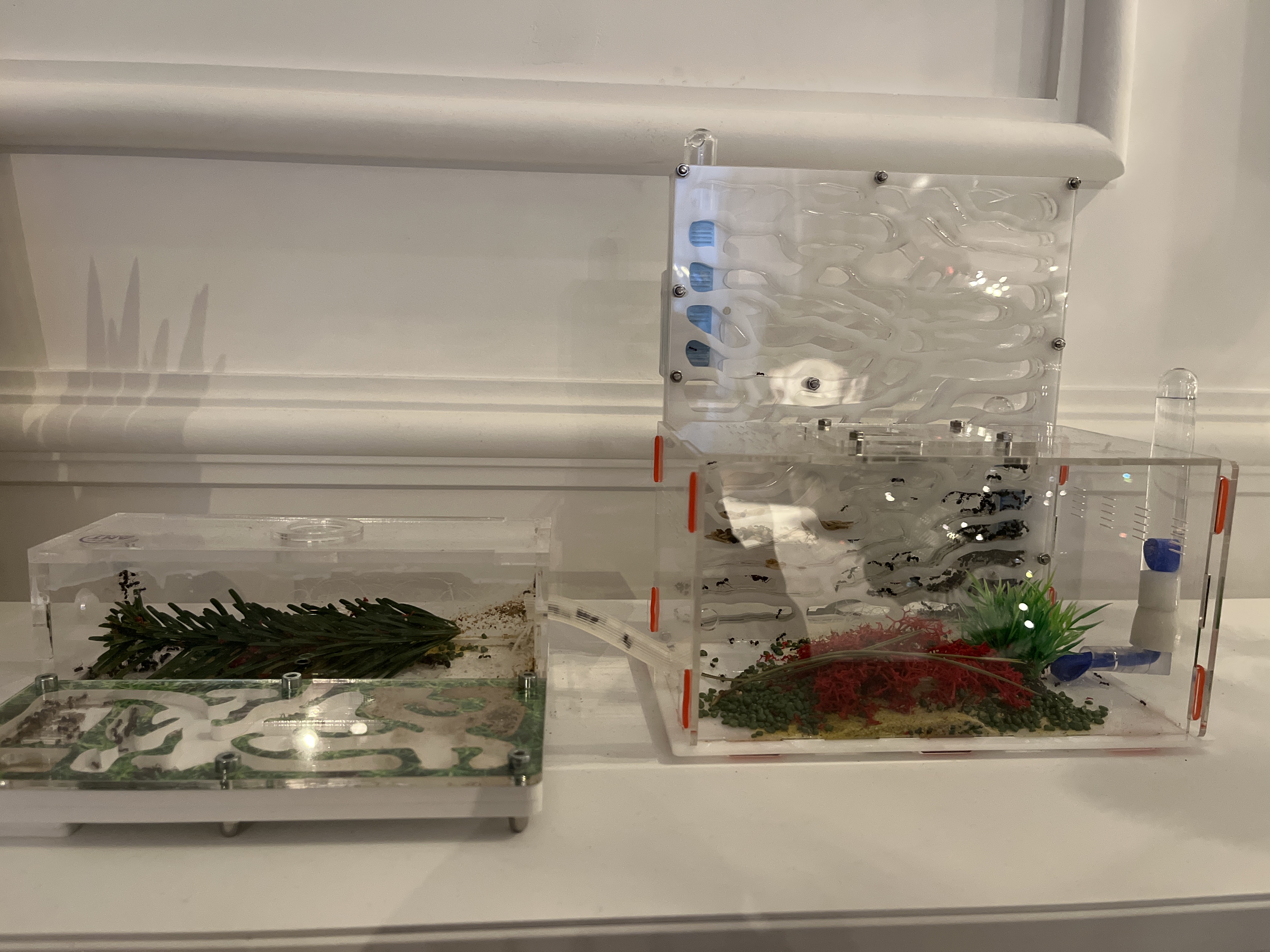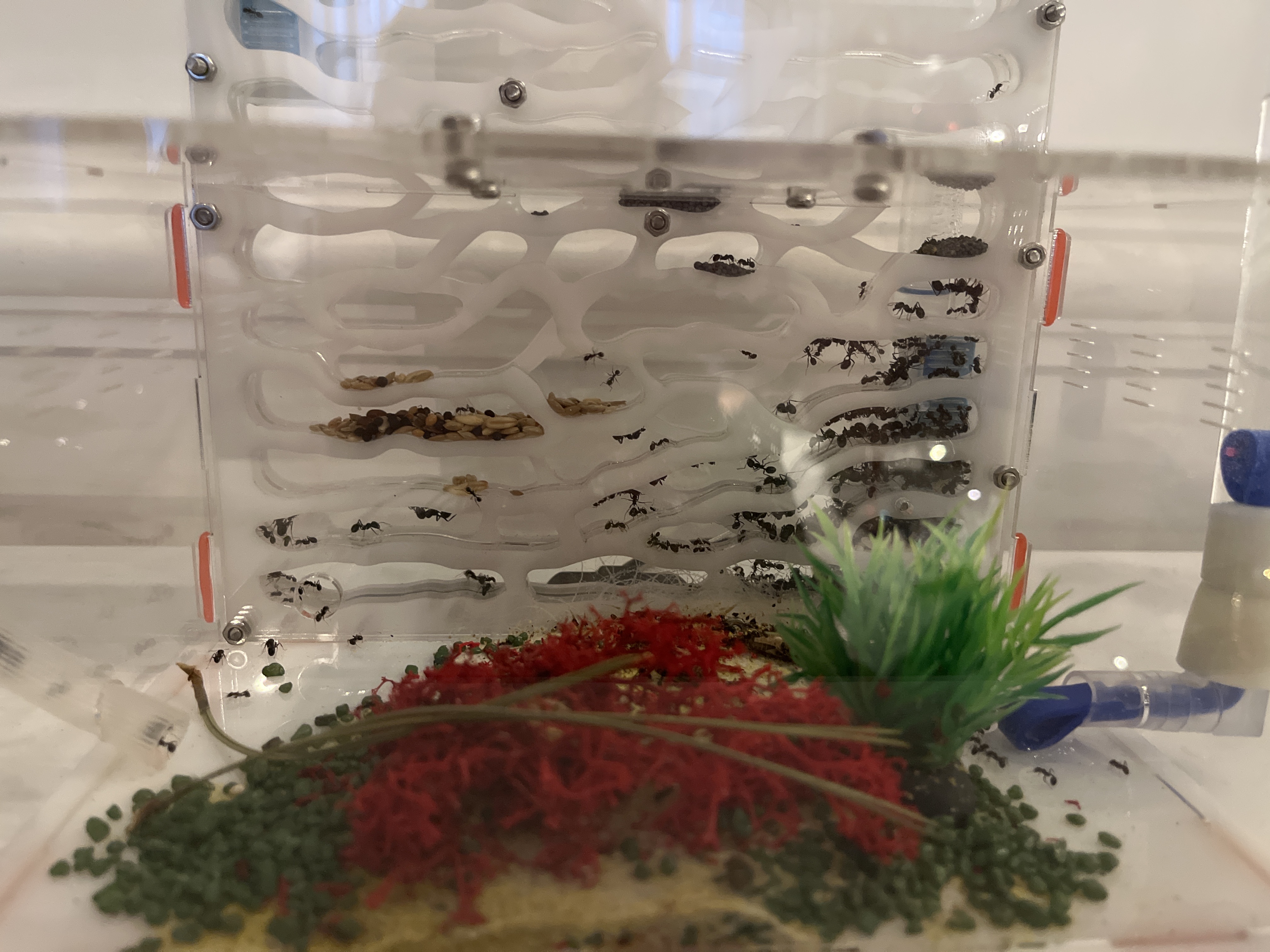 Przeprowadziliśmy mrówki - messor barbarus- do większego formikarium. Zastosowaliśmy podpowiedziany tu trik tj. mata grzewcza pod nowym formikarium. To skusiło większość mrówek i królową.