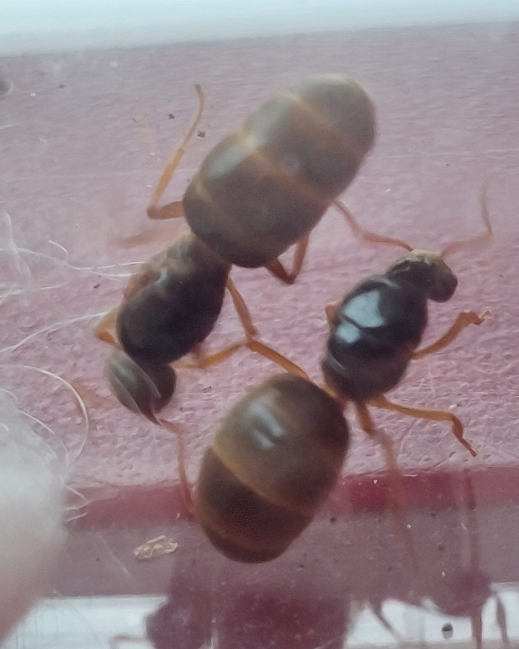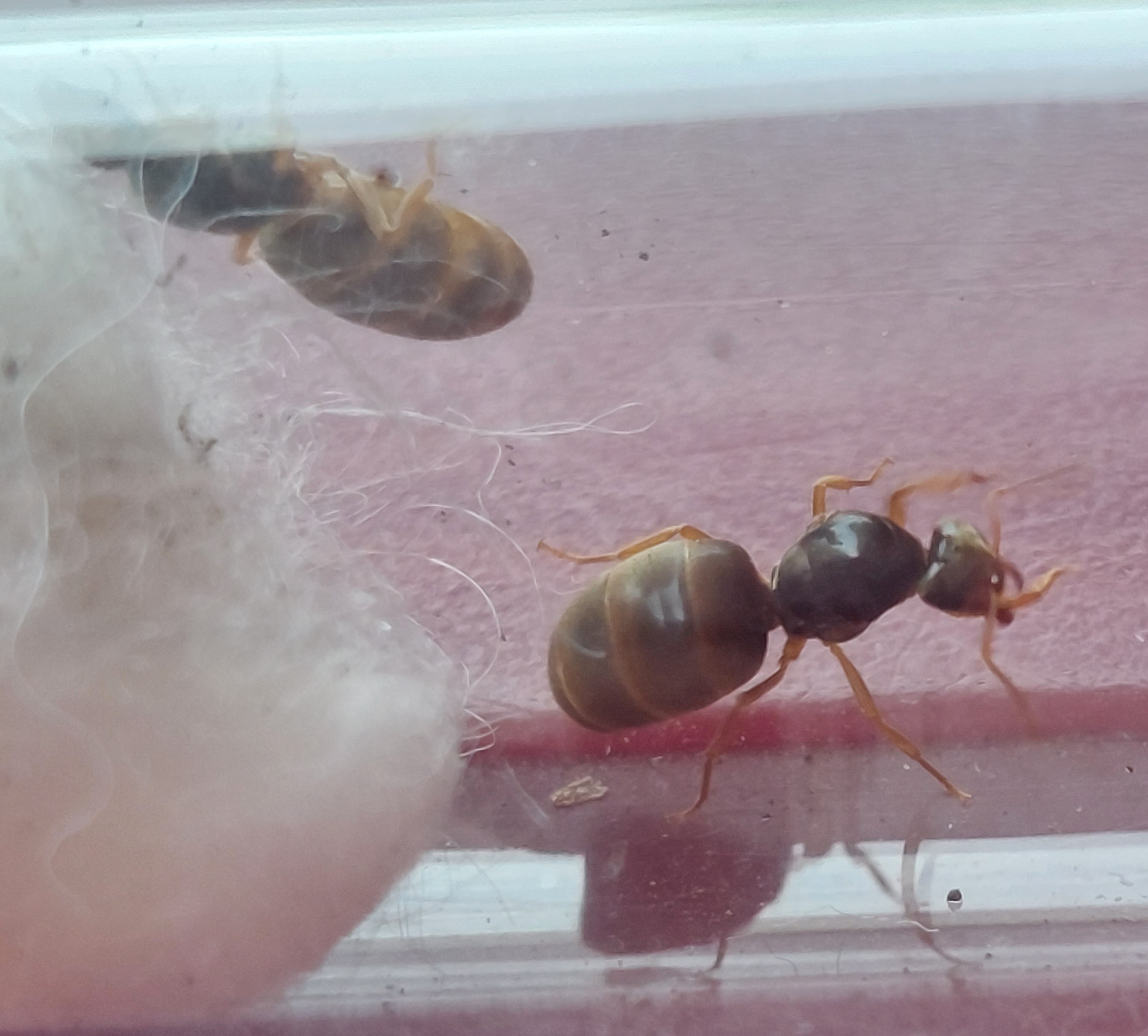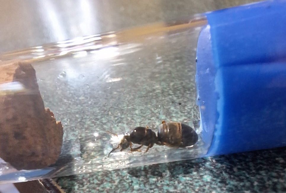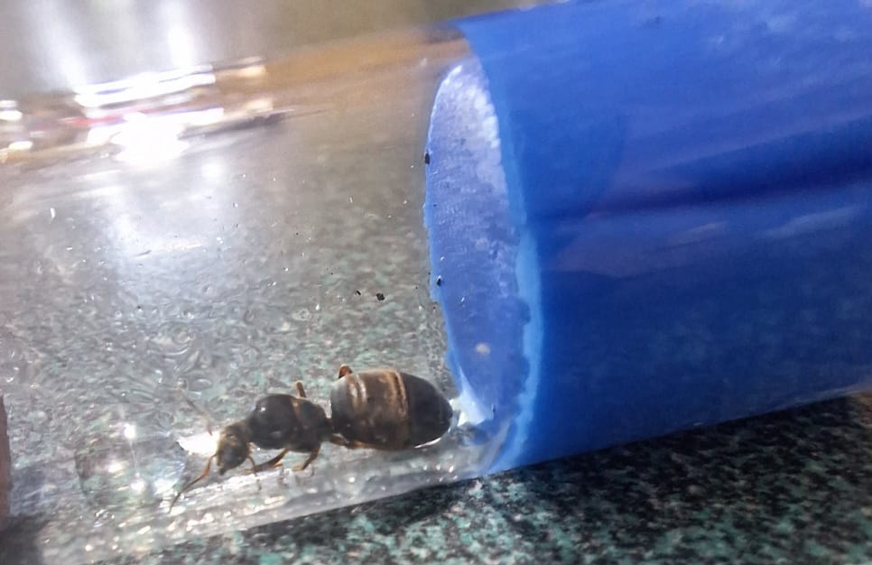 Do tego 3Q L. niger, wszystkie dopiero z jajkami. Do jednej przeprowadziłem adopcje potomstwa z koloni znajdującej się na ogrodzie(przekopywanie ziemi, odsłoniło komorę z potomstwem w kokonach). Ułożyła sobie wszystkie ładnie i dostała pyłek pszczeli,mąkę z maczniaka i zdziebko suszonej krwi.