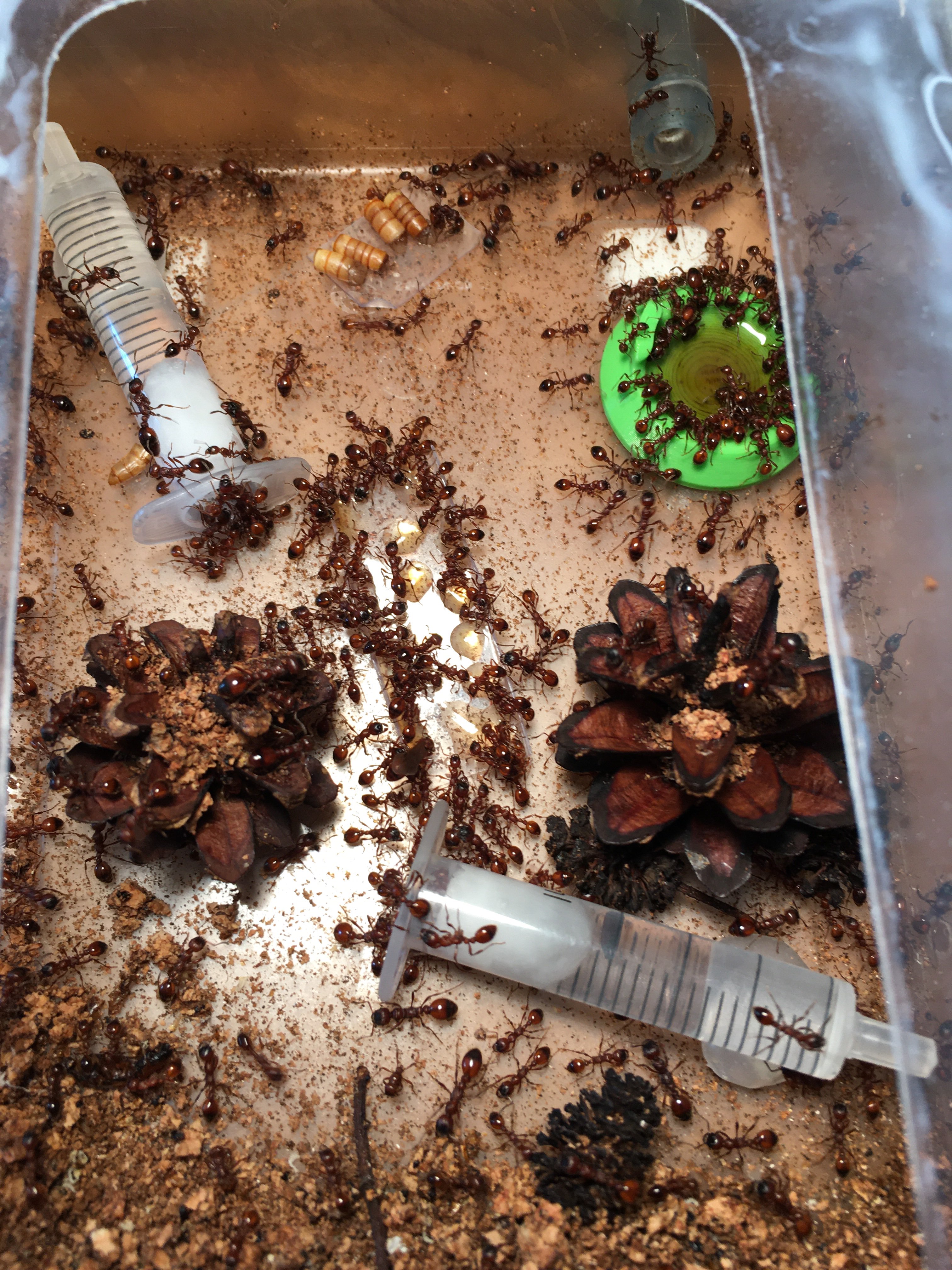 Poidełko takie co sklepy wciskają nie jest wymagane. Kolonia, która siedzi jeszcze w probówce czerpie z niej wodę. Większej kolonii można dać na arenę takową probówkę i będzie ona pełniła rolę poidełka-mimo że będą siedziały w nawadnianym gnieździe, to mogą sobie czerpać dodatkową wodę z niej, a przy dużej kolonii nawet same nawadniać gniazdo.